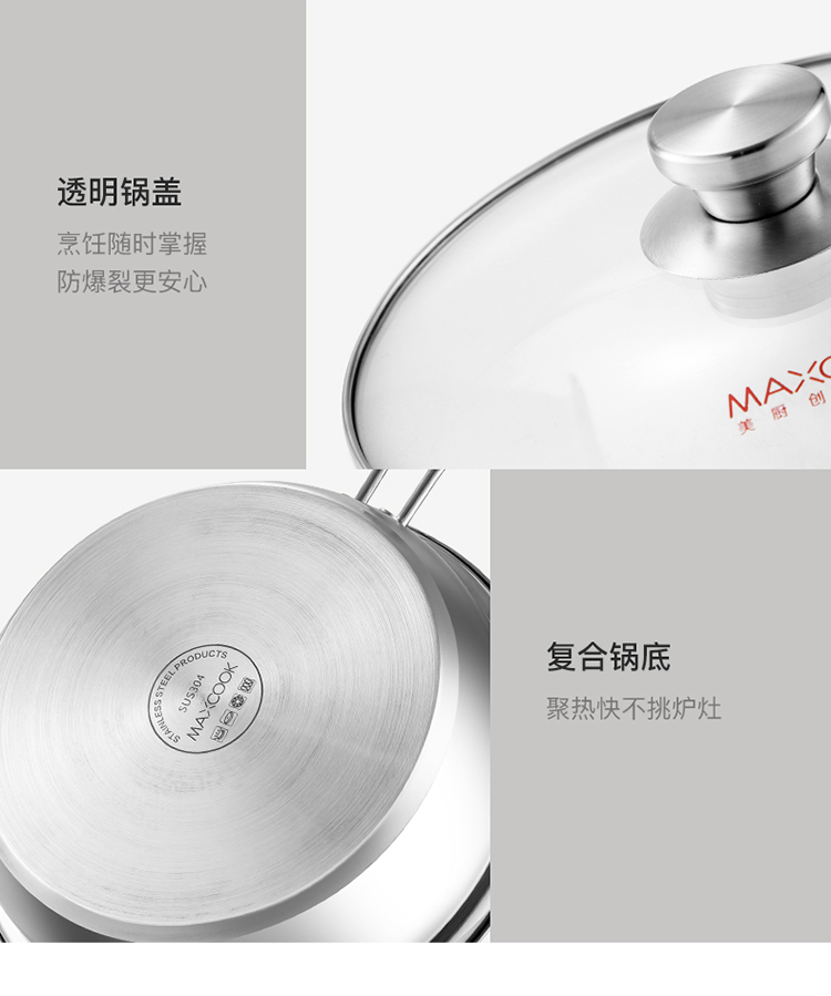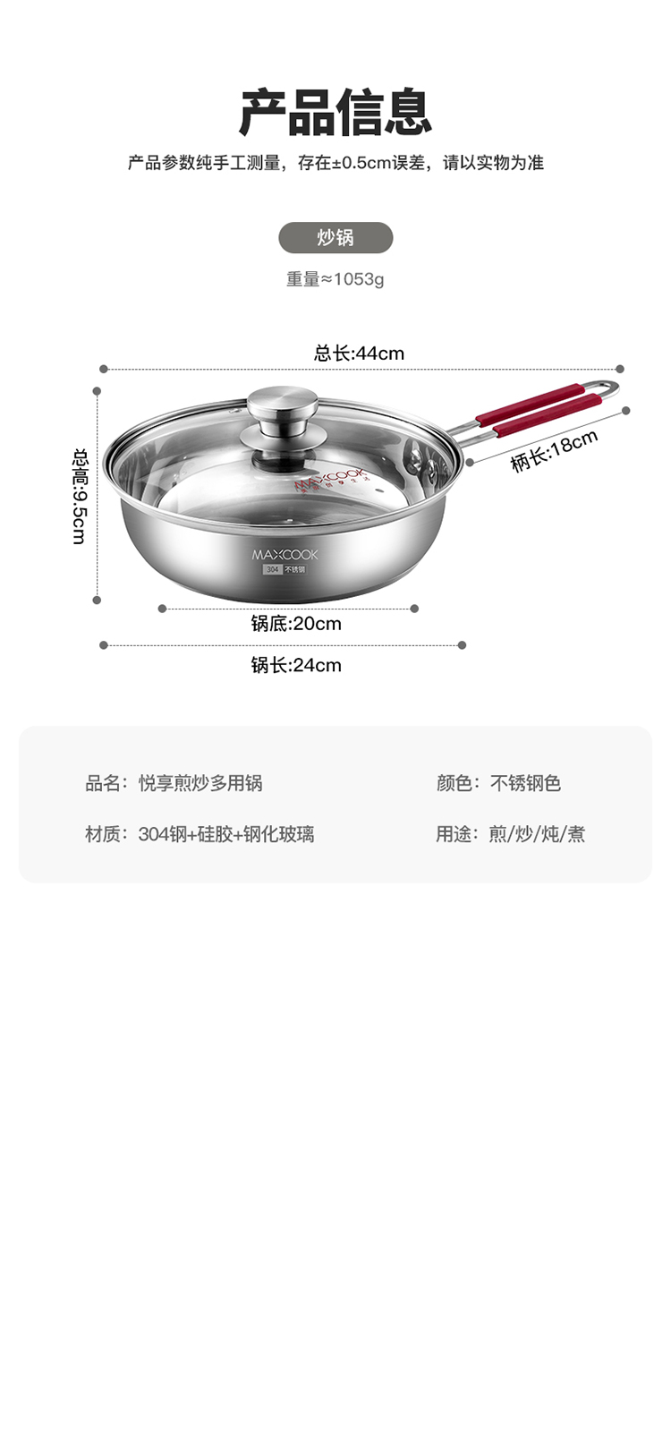 商品名称:MAXCOOK/美厨24cm不锈钢悦享煎炒多用锅MCLP-603