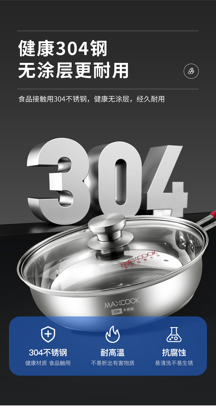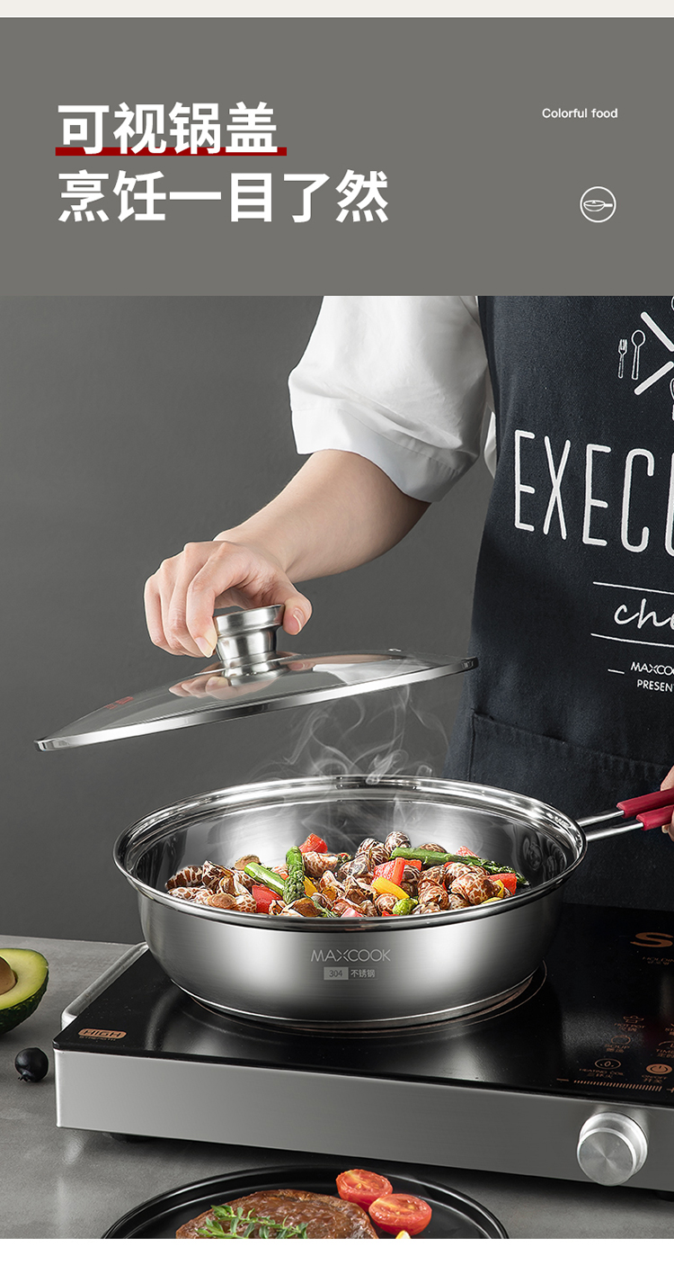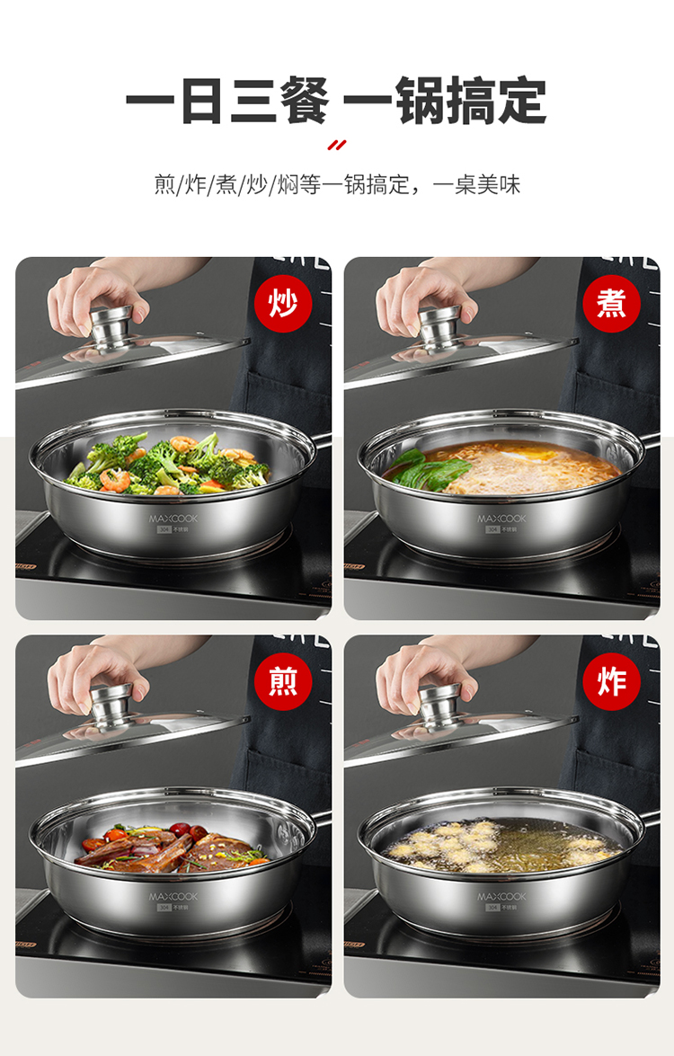 MAXCOOK/美厨24cm不锈钢悦享煎炒多用锅MCLP-603
