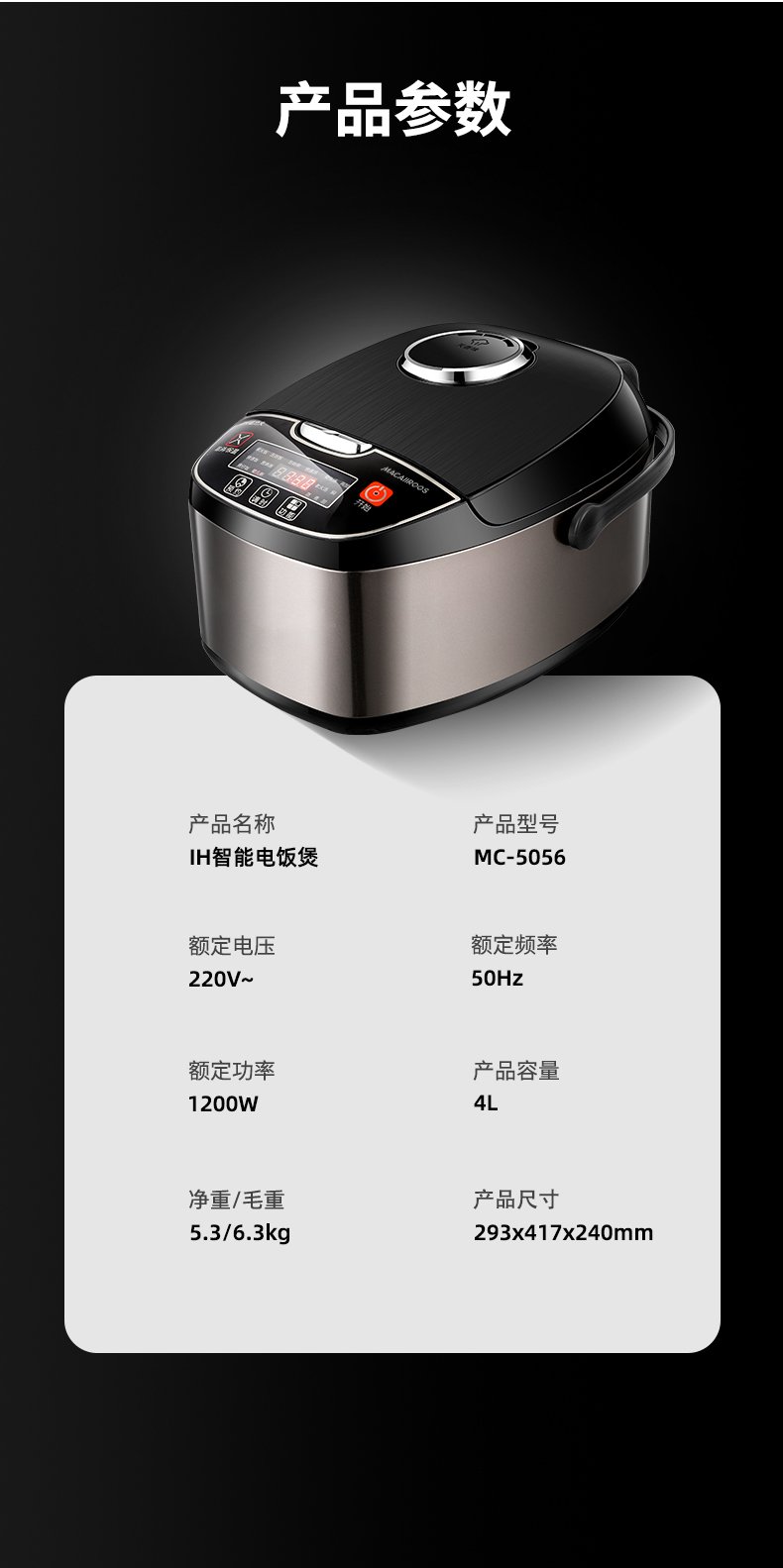 商品名称:MACAIIROOS/迈卡罗4升IH智能电饭煲MC-5056升级款