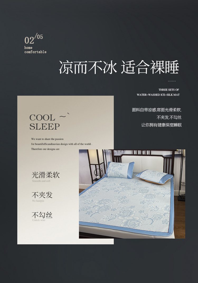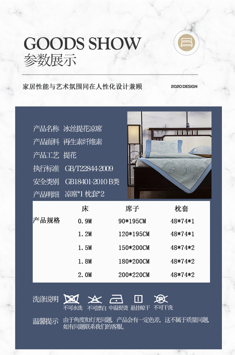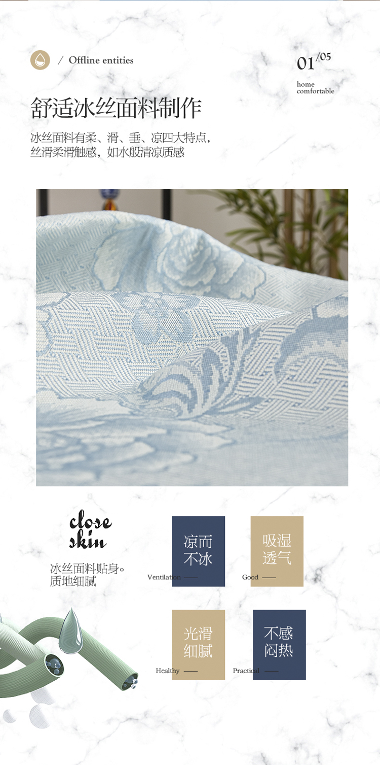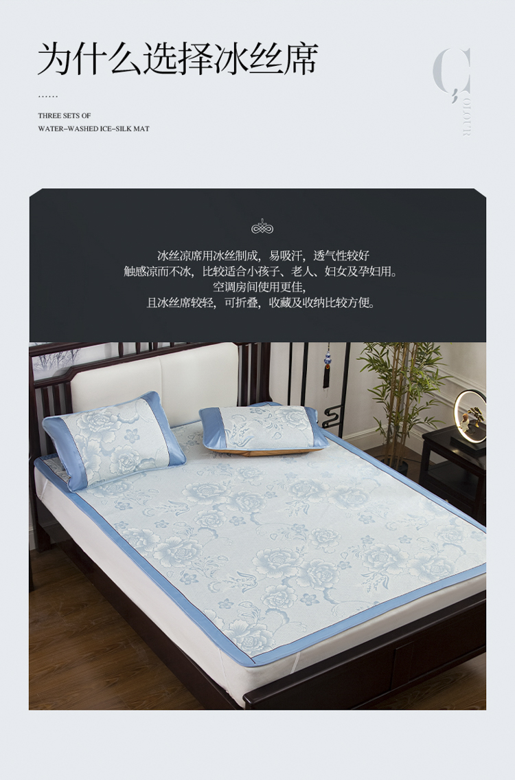 商品名称:pochme textile/多奇曼家纺提花冰丝席三件套