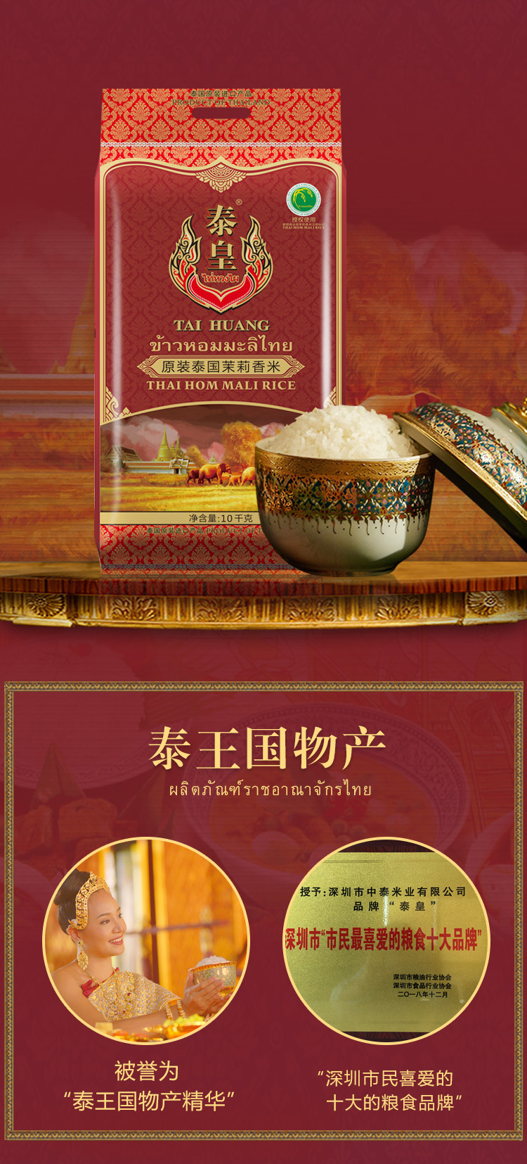 商品名称:泰皇泰国原装茉莉香米10kg
