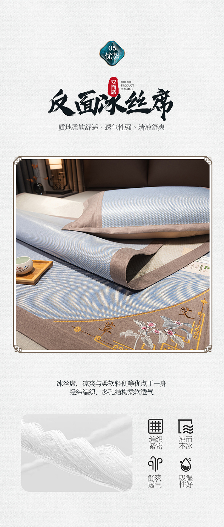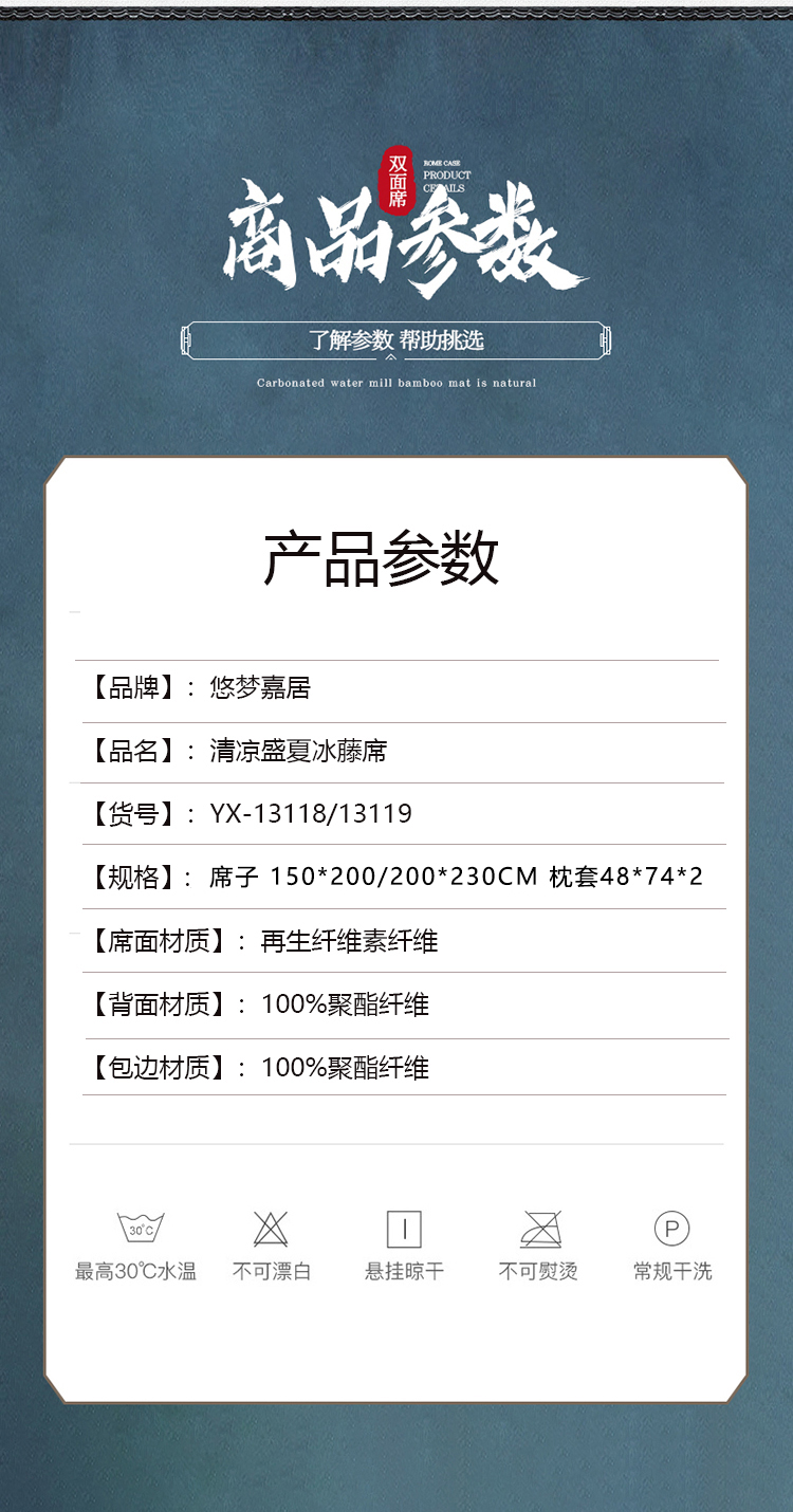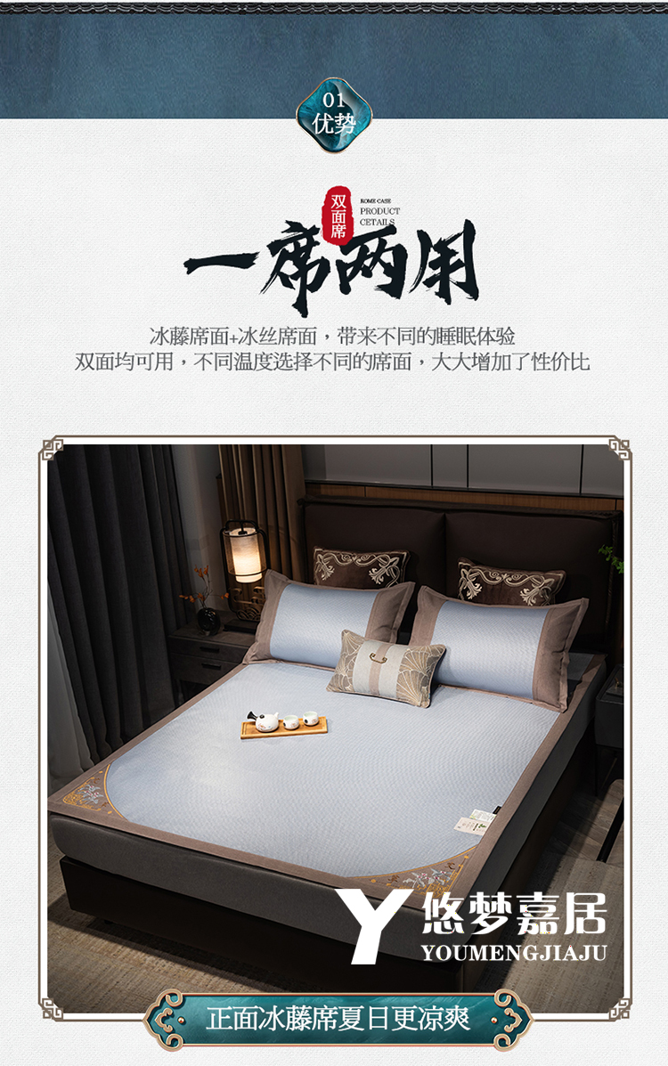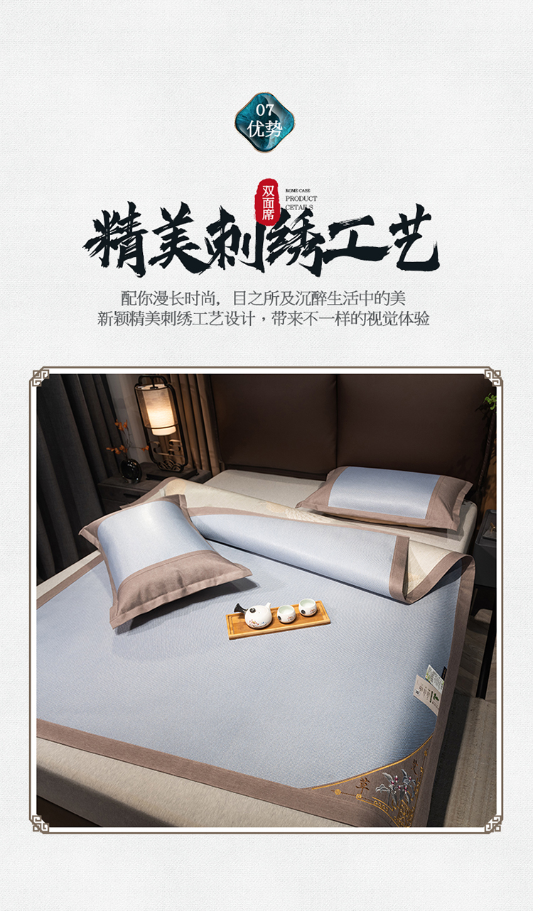 商品名称:悠梦嘉居清凉盛夏刺绣冰藤凉席三件套