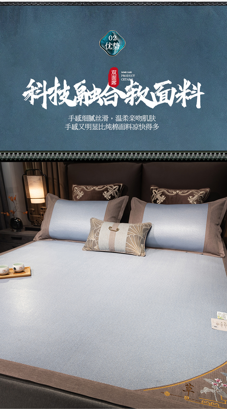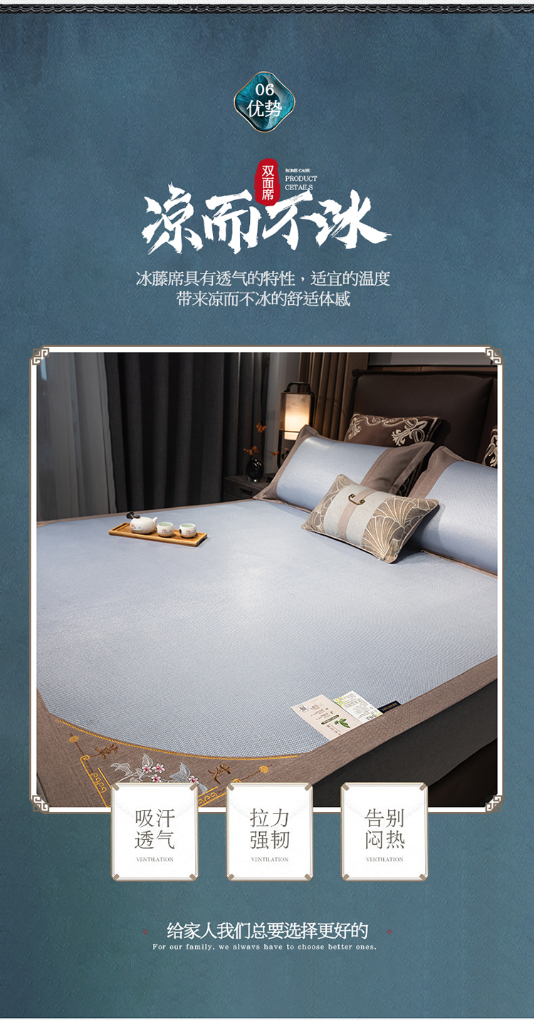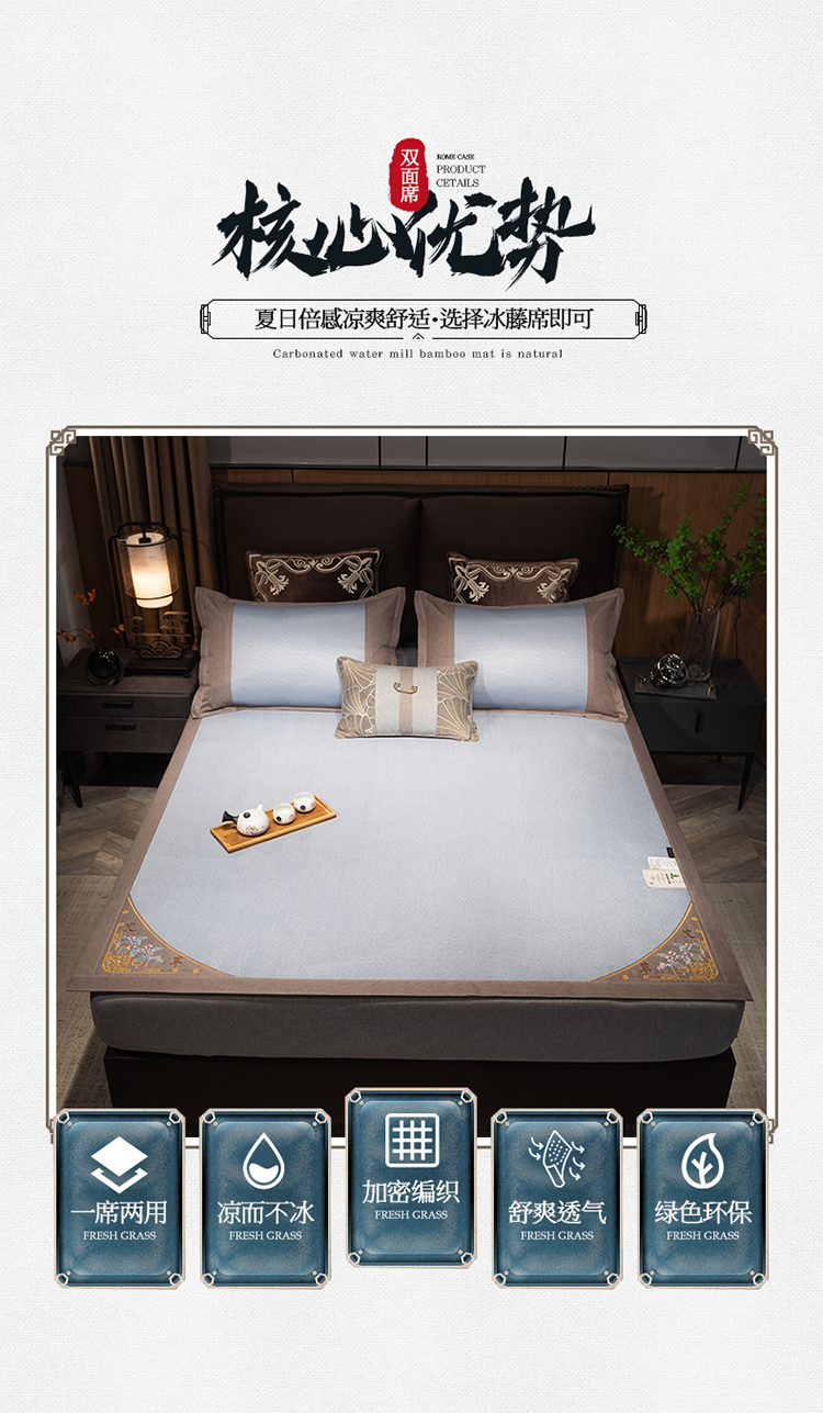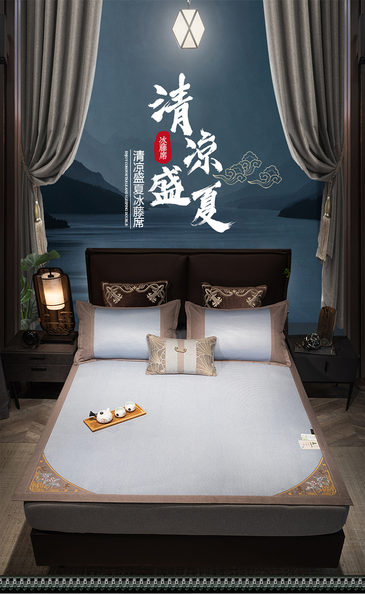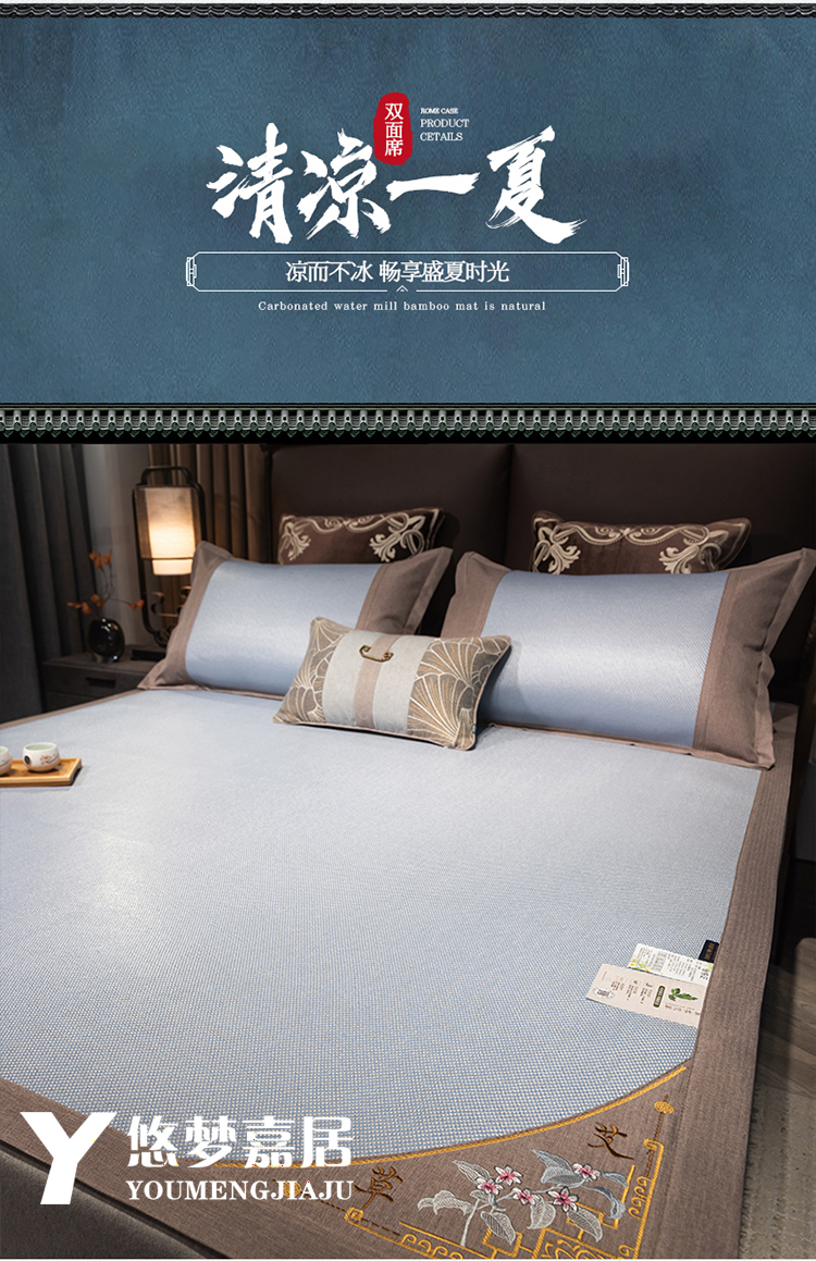 悠梦嘉居清凉盛夏刺绣冰藤凉席三件套