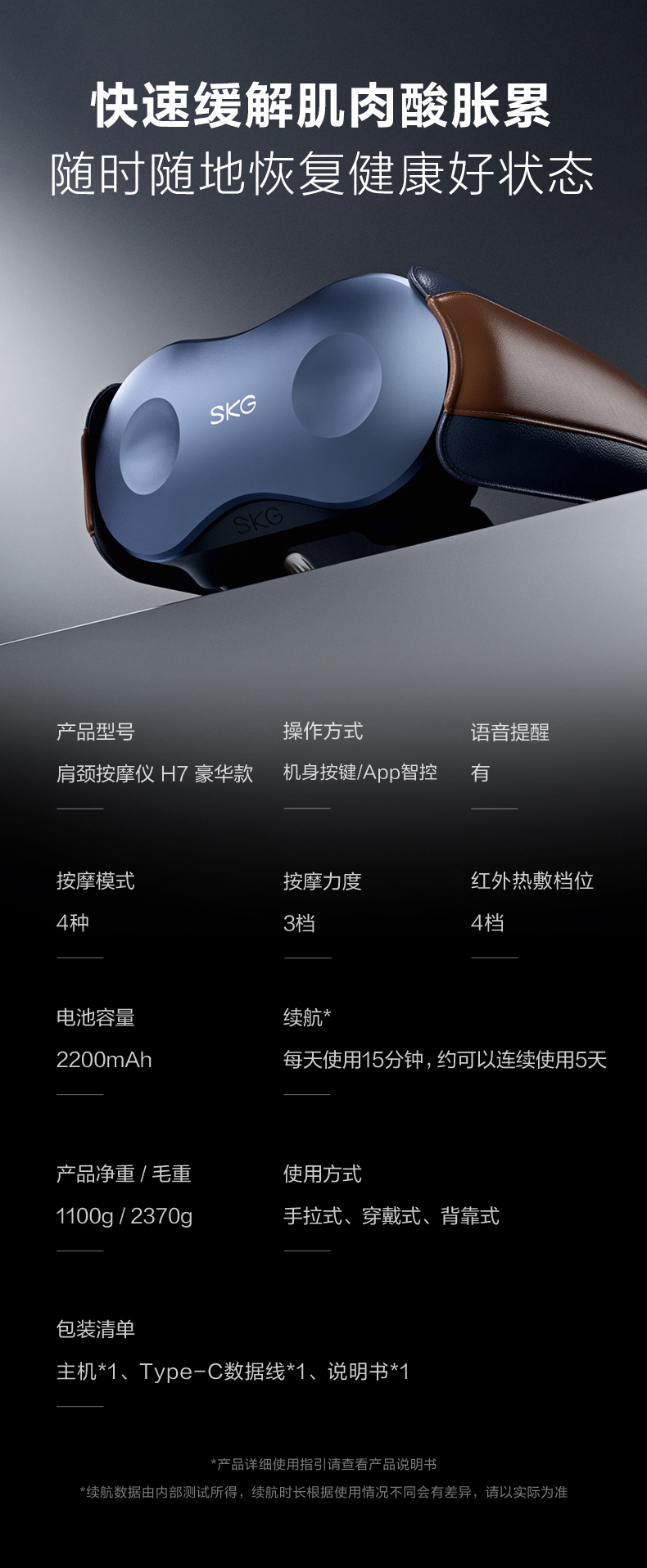 商品名称:【京东/顺丰配送】SKG肩颈按摩仪-蓝色H7豪华款