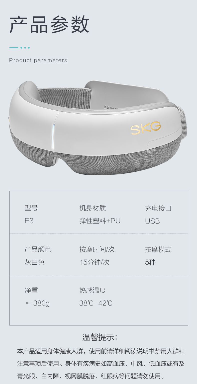 商品名称:【京东/顺丰配送】SKG眼部按摩仪-灰白色E3