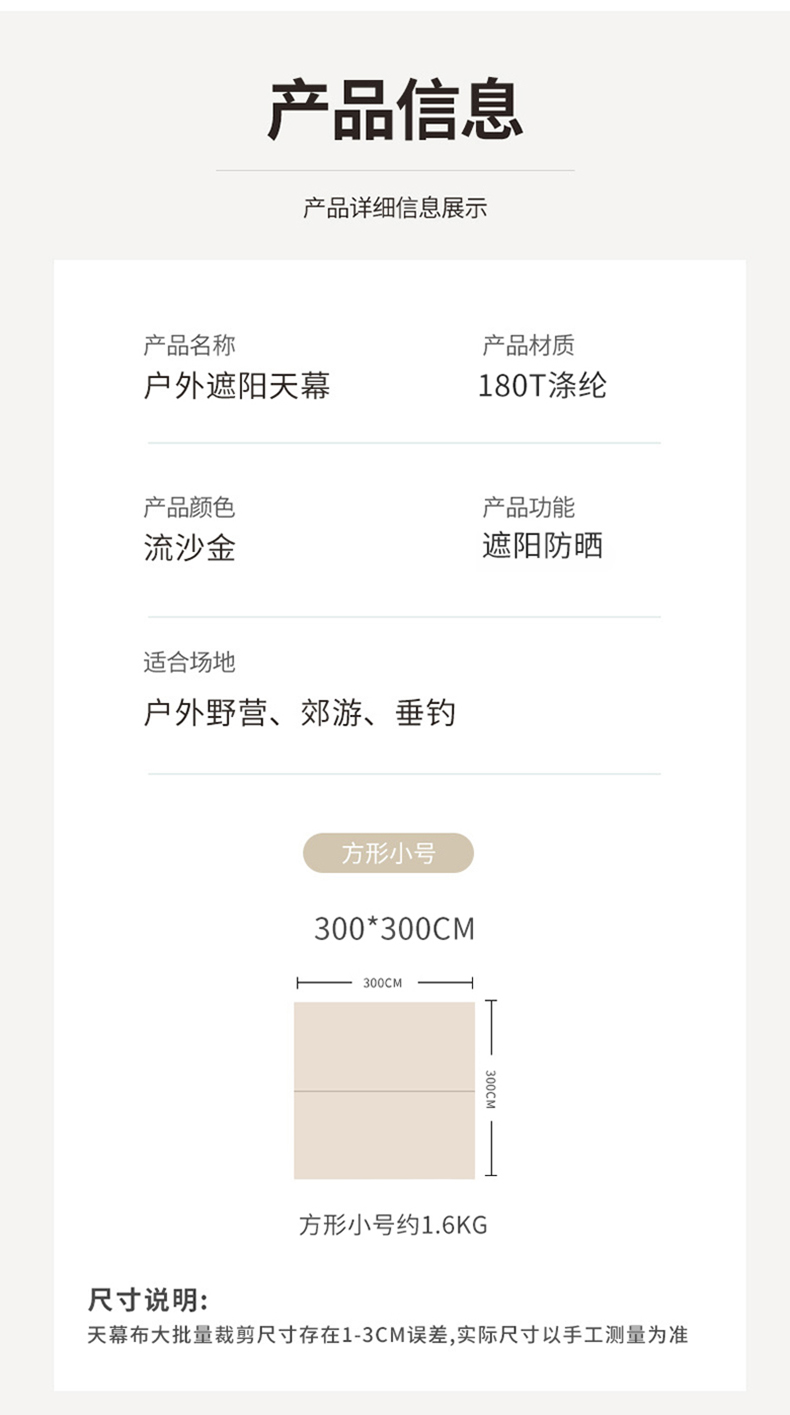 商品名称:【京东/顺丰配送】FTLY/飞图乐方形小号户外遮阳天幕-流沙金标配TM00