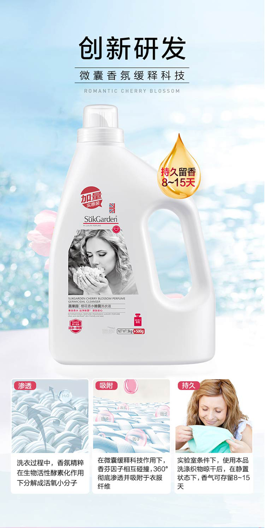 SukGarden/蔬果园樱花香水抑菌洗衣液3.5kg