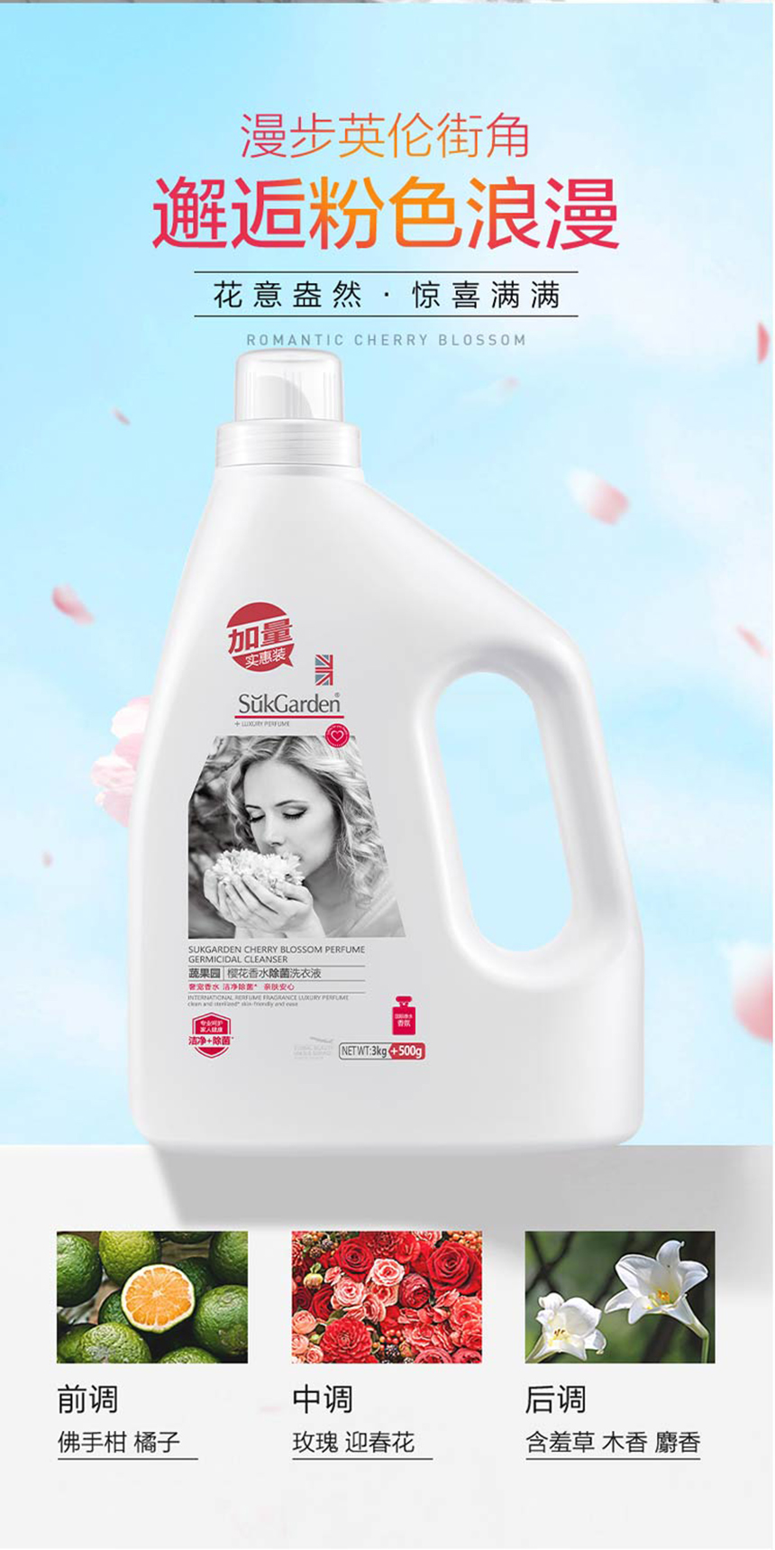 商品名称:SukGarden/蔬果园樱花香水抑菌洗衣液3.5kg