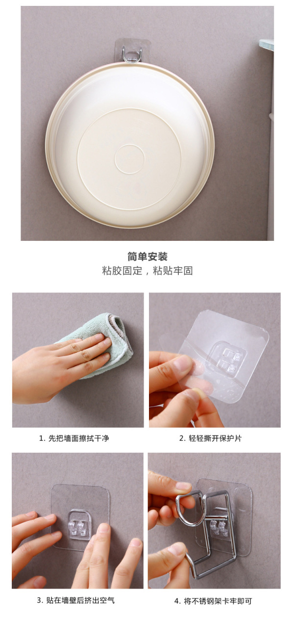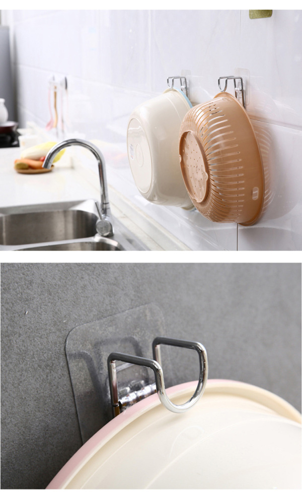 商品名称:熊诺不锈钢脸盆架 厨房壁挂脸盆挂钩浴室免打孔收纳架多功能置物架