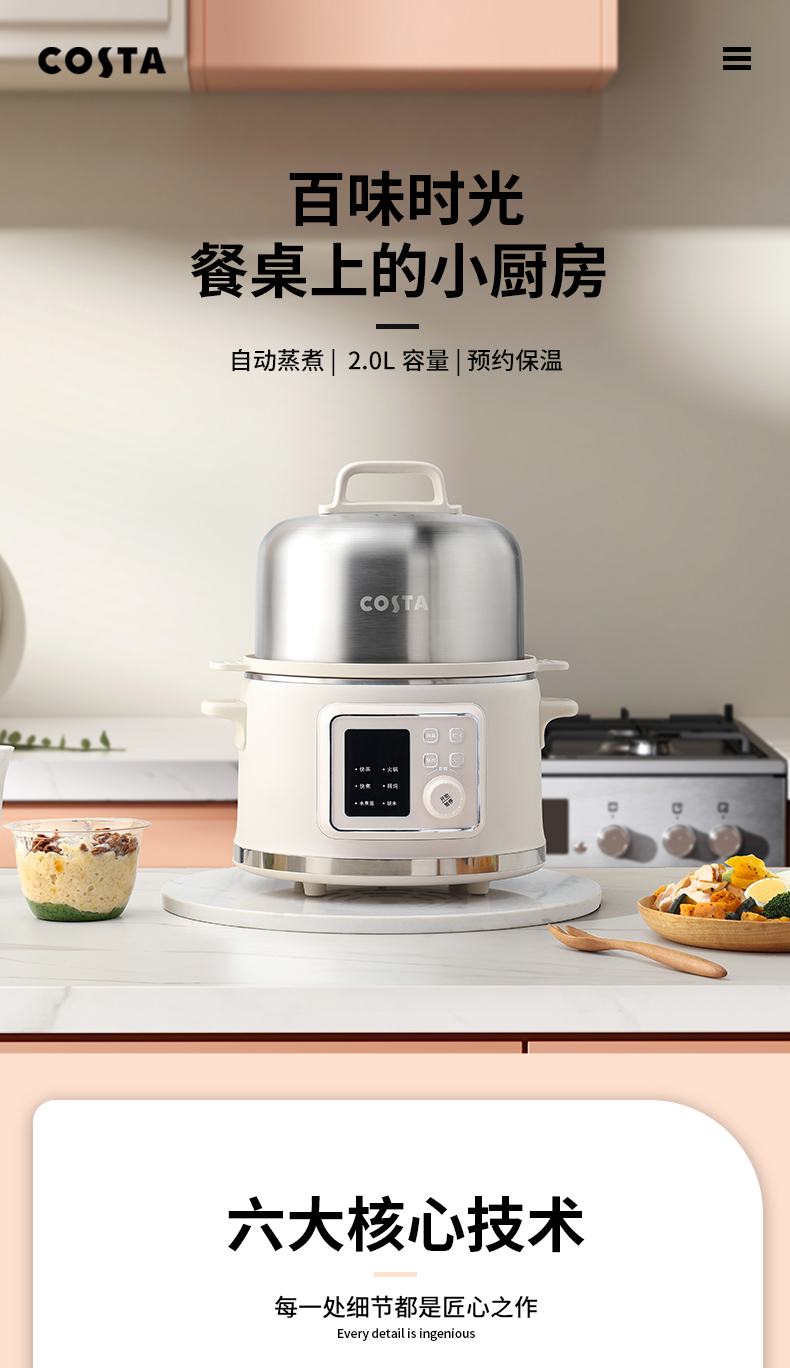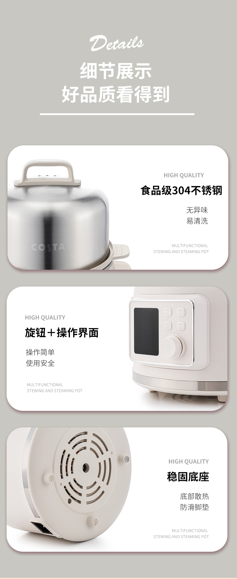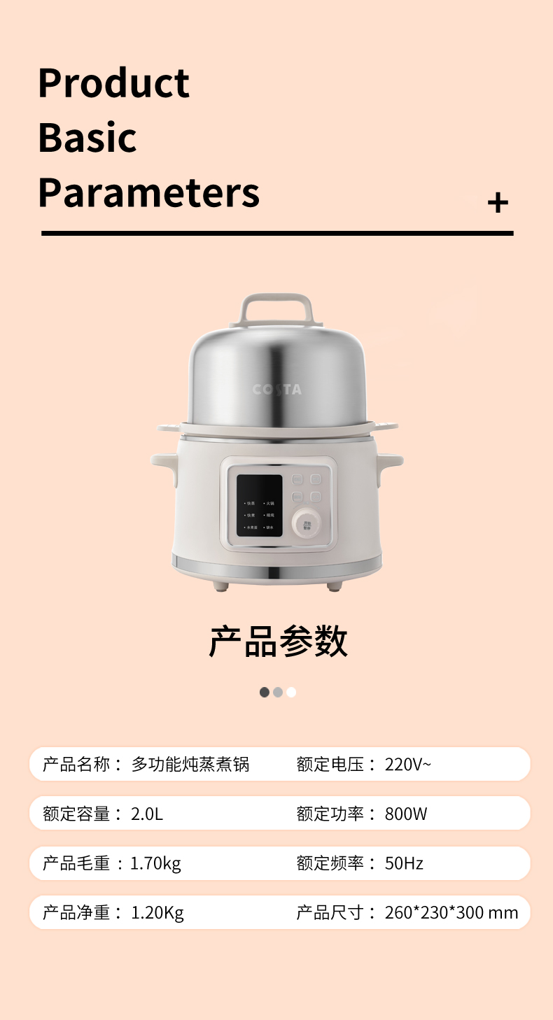 商品名称:【顺丰/德邦配送】COSTA 2升多功能炖蒸煮电锅CT-11L01