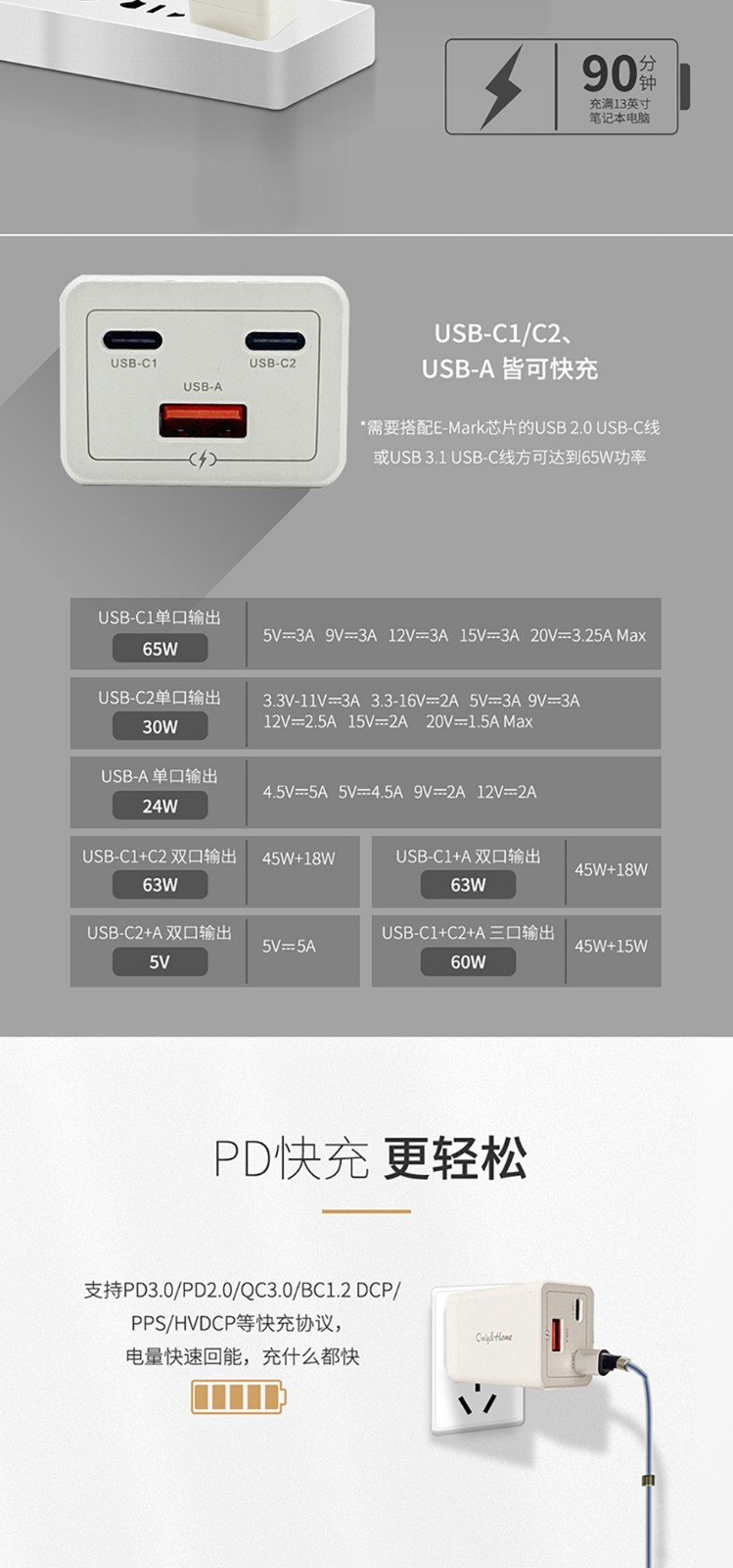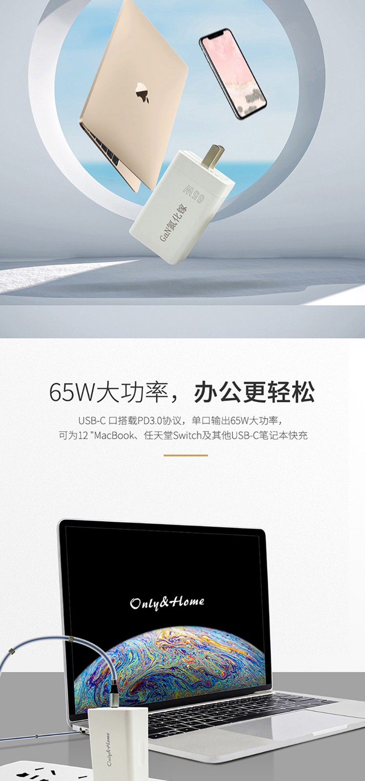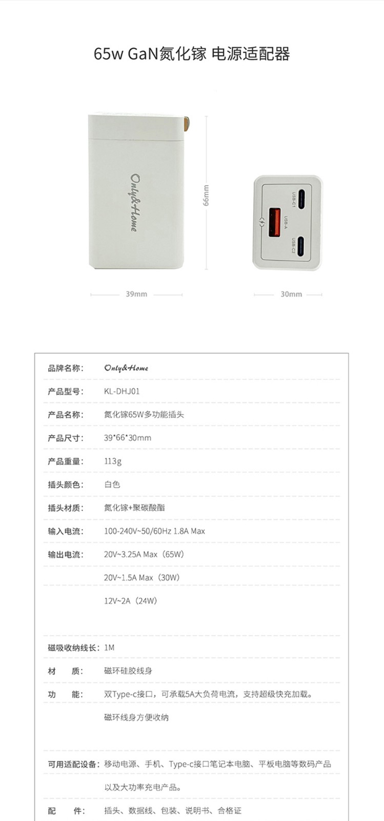 商品名称:Only&Home氮化镓65W多功能适配器插头