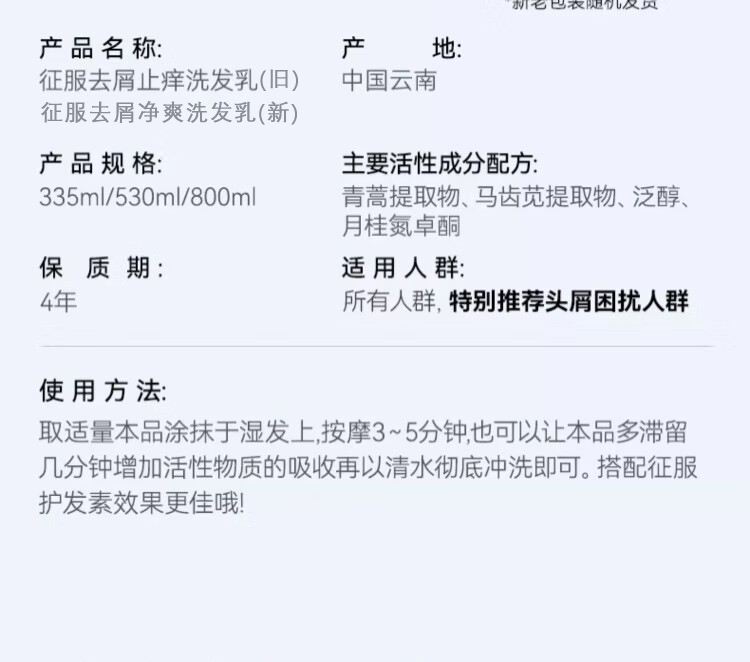 商品名称:CONQUER/征服去屑净爽洗发乳