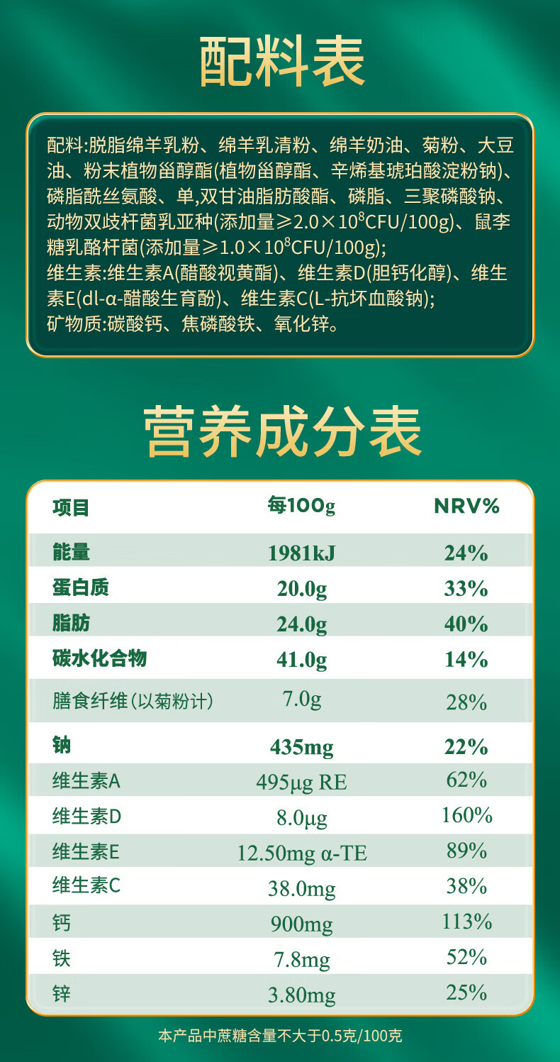 商品名称:ZHENMU/臻牧乳养道绵羊奶粉礼盒750g*2罐