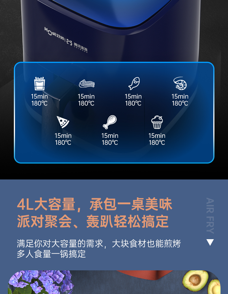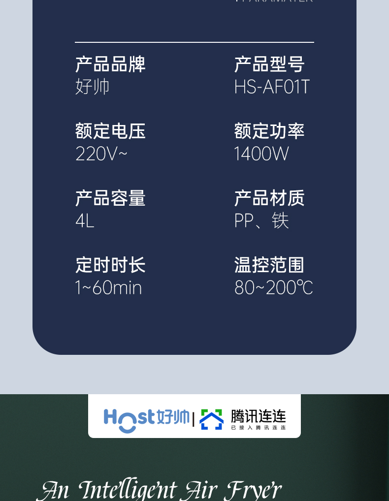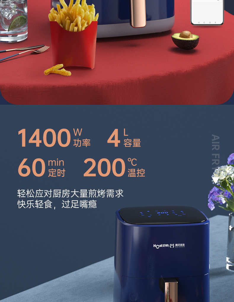商品名称:好帅4升智能空气炸锅HS-AFO1T