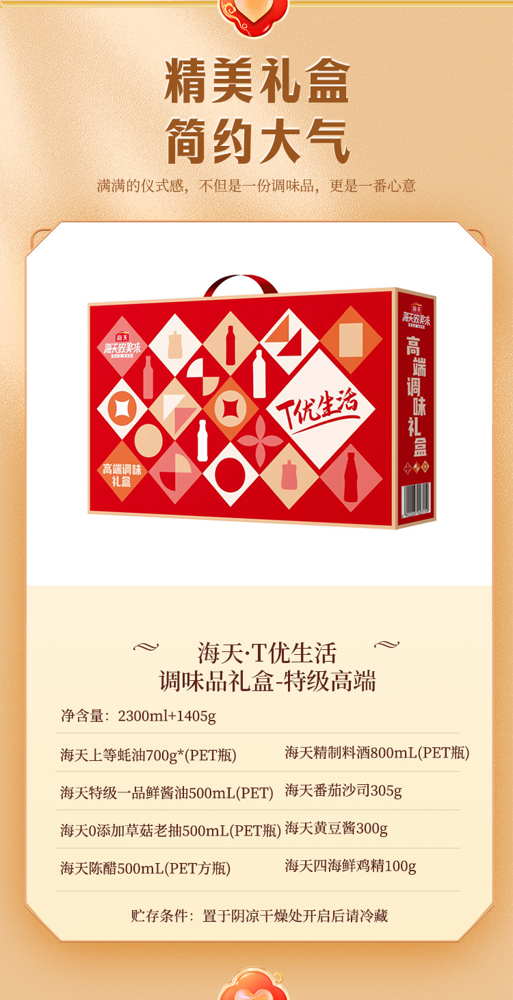 商品名称:海天T优生活调味品特级高端礼盒1405g+2300ml