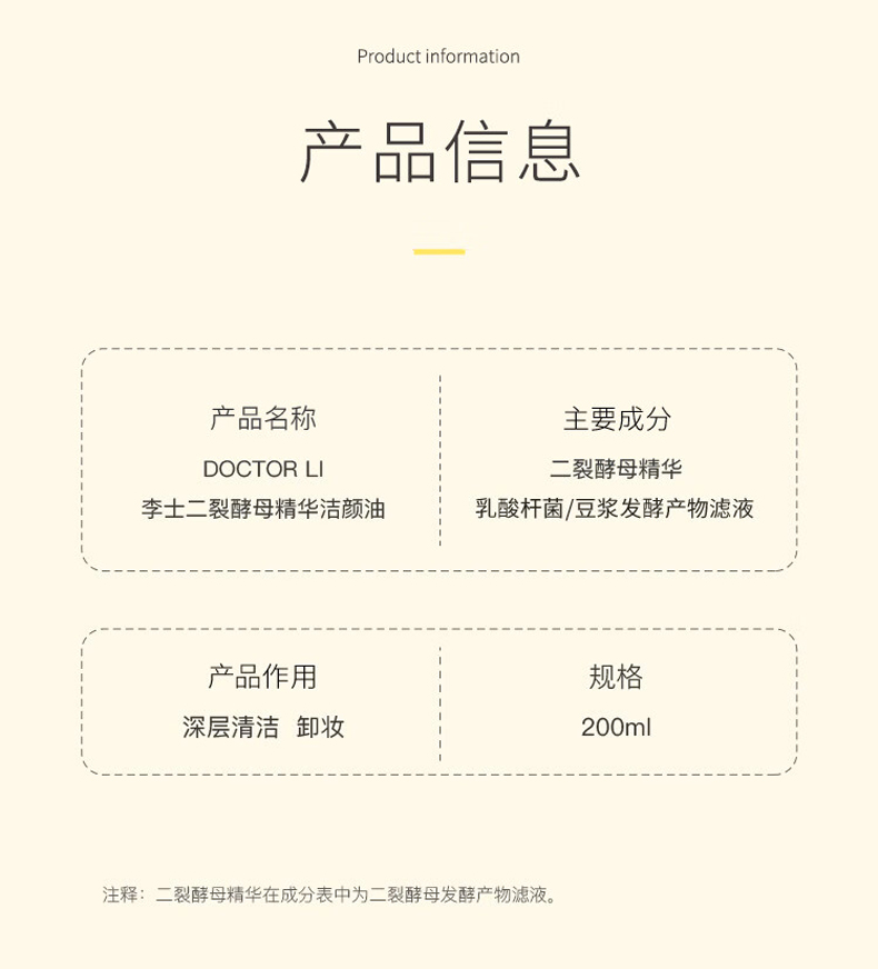 商品名称:DOCTOR LI李士二裂酵母精华洁颜油200ml