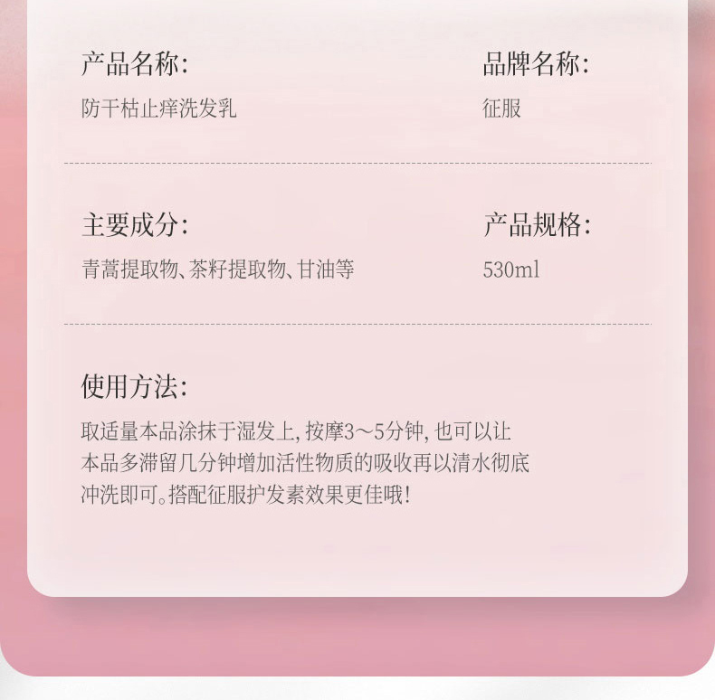 商品名称:CONQUER/征服防干枯止痒洗发乳530ml