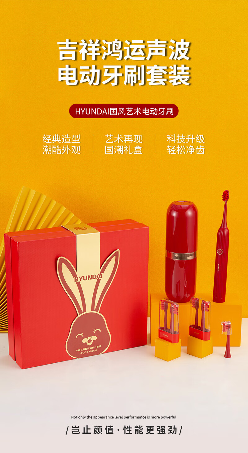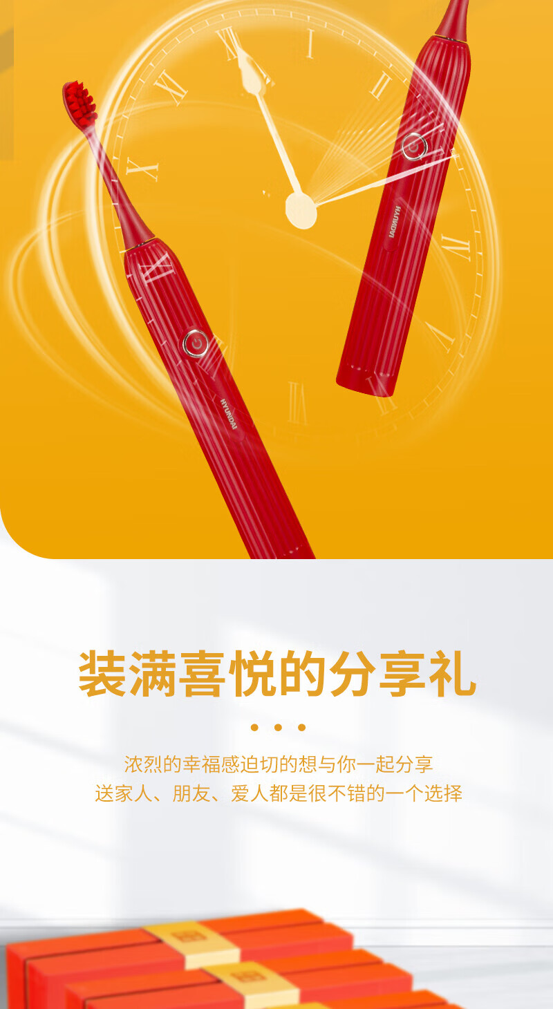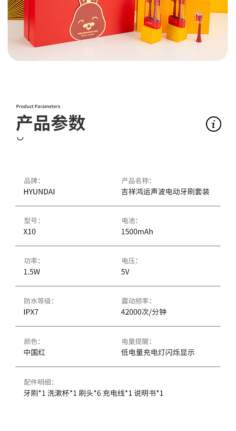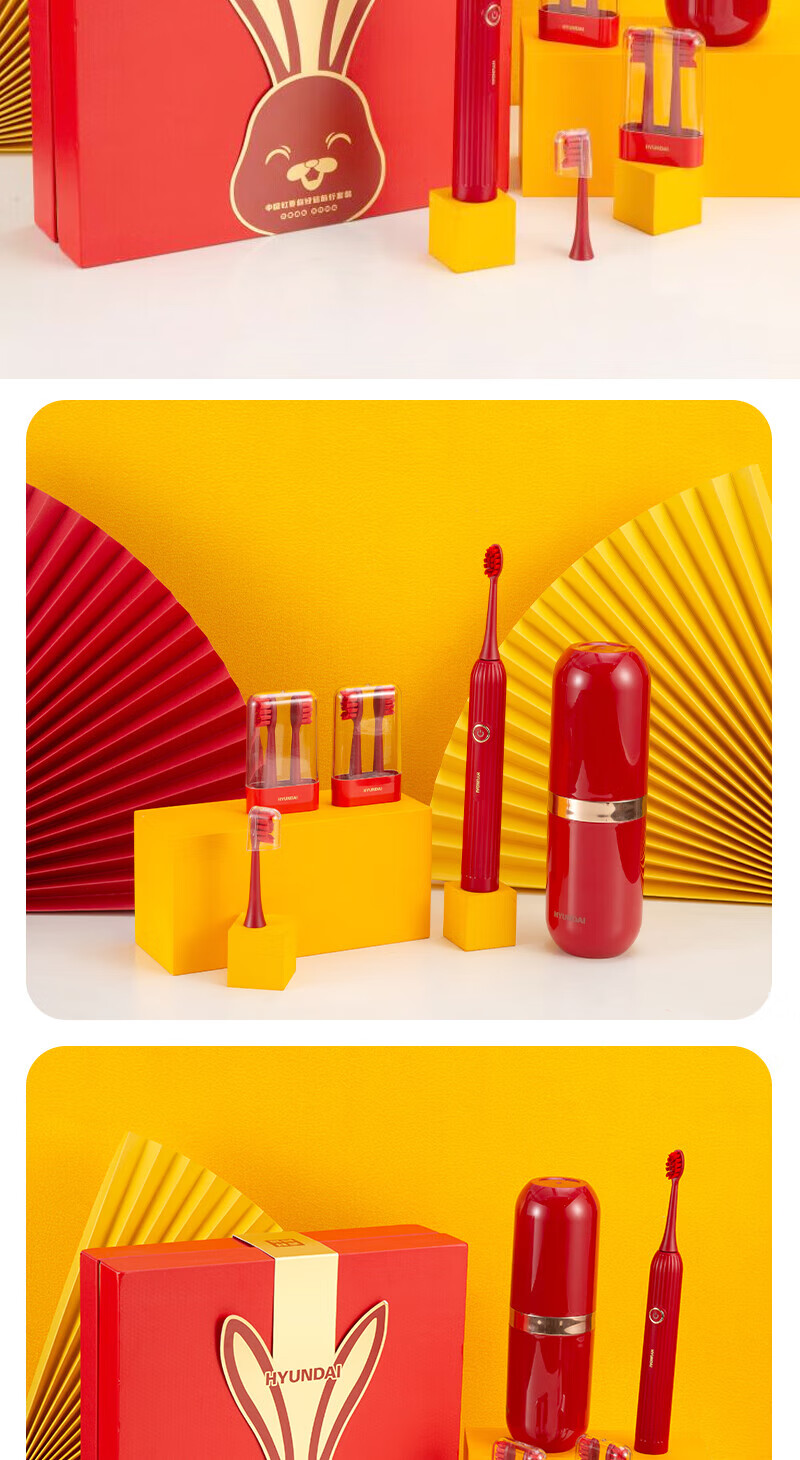商品名称:HYUNDAI/现代吉祥鸿运声波电动牙刷套装-中国红X10