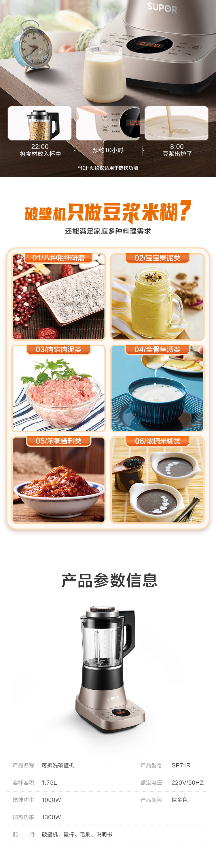 商品名称:SUPOR/苏泊尔1.75升可拆洗破壁机SP71R