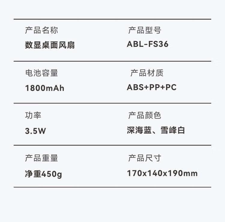 商品名称:ABEREVE/艾贝丽数显桌面风扇ABL-FS36
