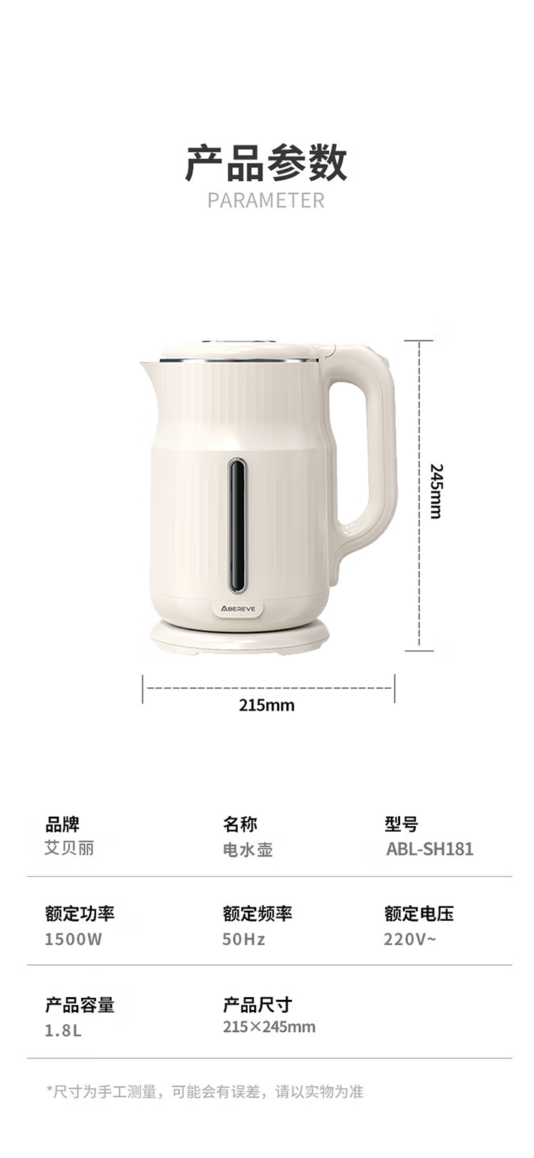 商品名称:ABEREVE/艾贝丽1.8升保温电水壶ABL-SH181