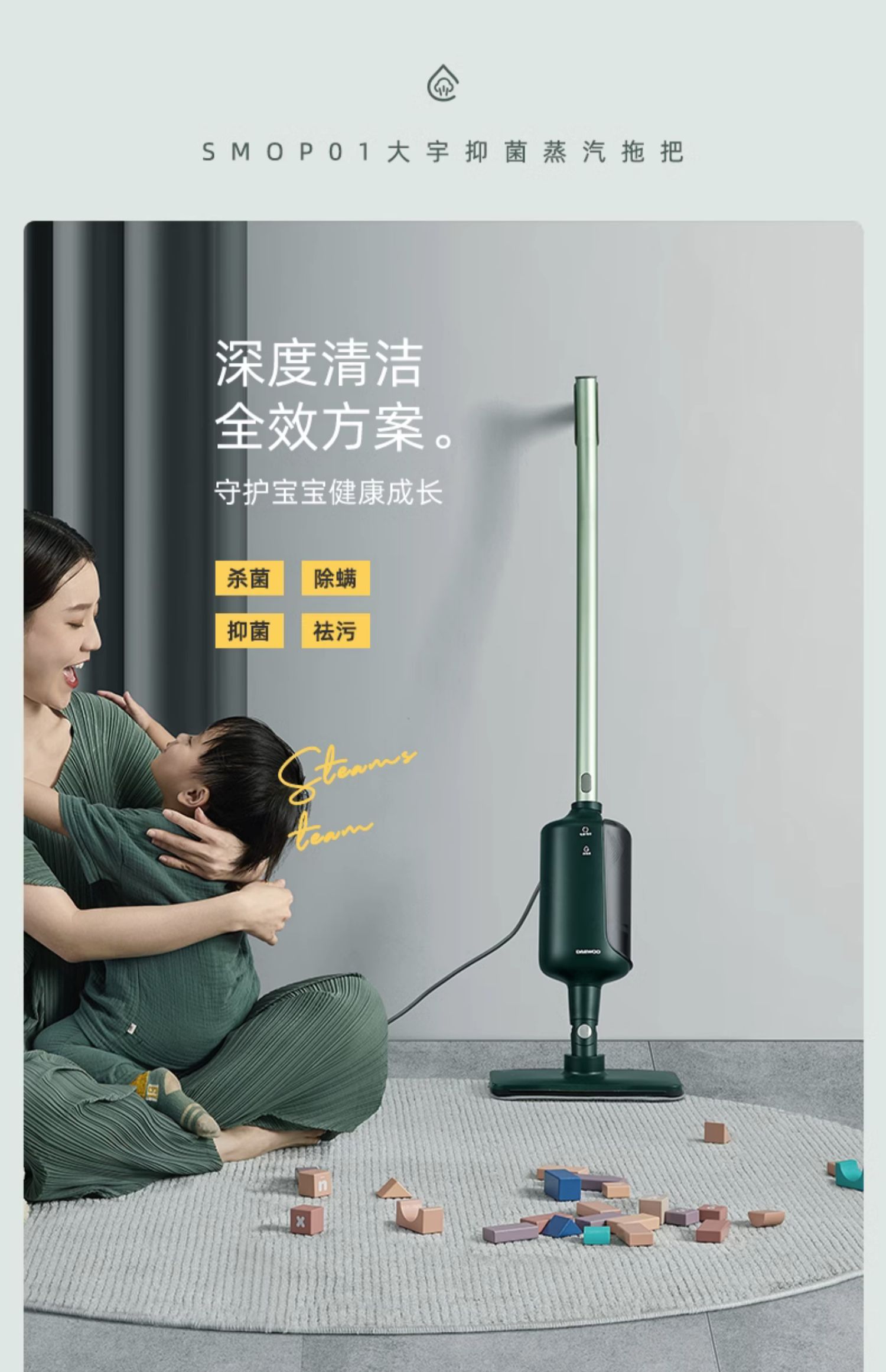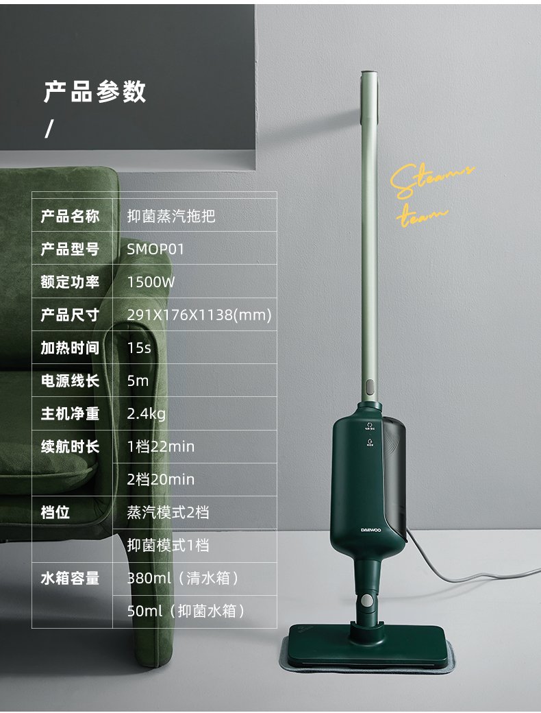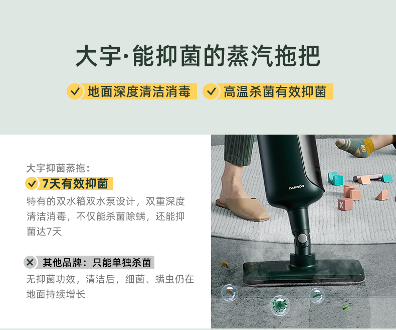 商品名称:DAEWOO/大宇电动抑菌蒸汽拖把SMOP01