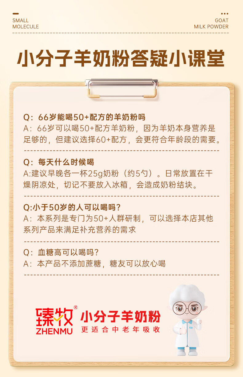 商品名称:ZHENMU/臻牧畅百岁70+无蔗糖高钙中老年羊奶粉礼盒800g*2罐