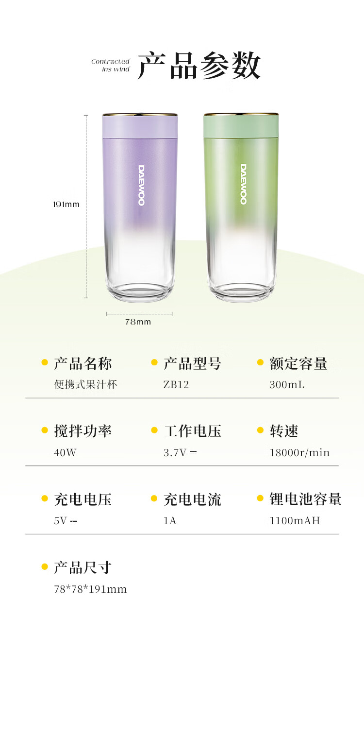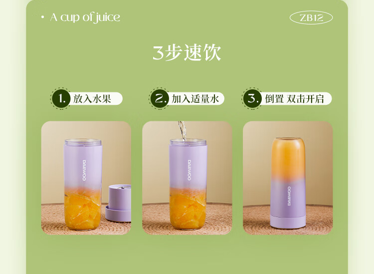 商品名称:DAEWOO/大宇300毫升便携式果汁杯ZB12