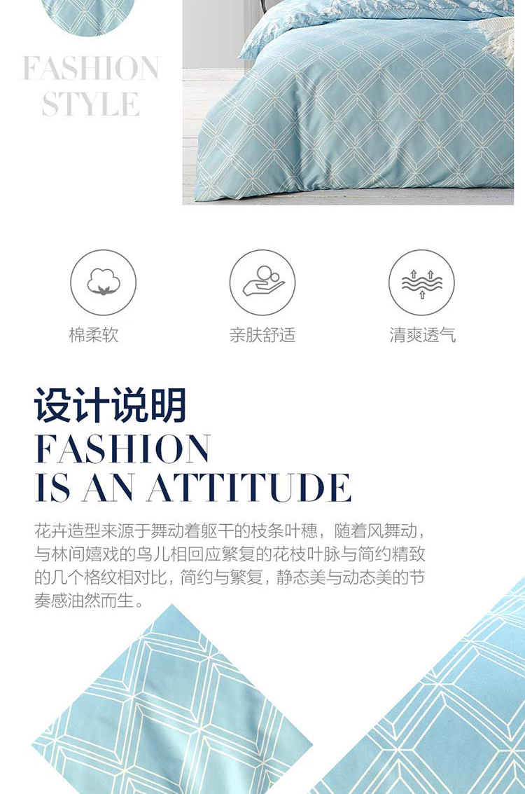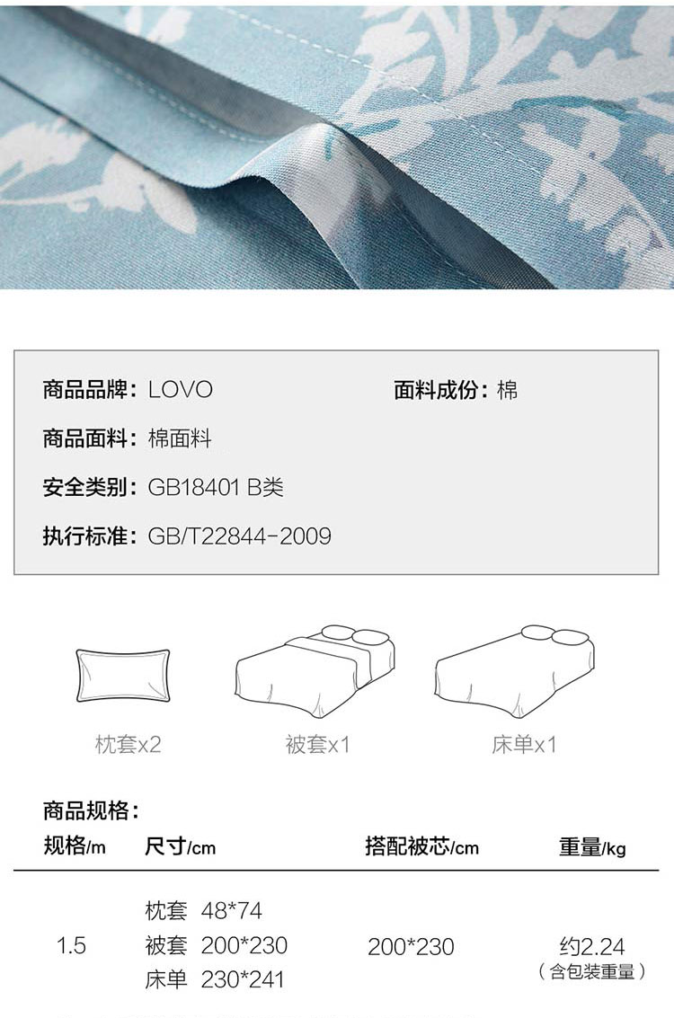 商品名称:LOVO/乐蜗家纺曲径通幽纯棉床品四件套200*230cm TGVAD017