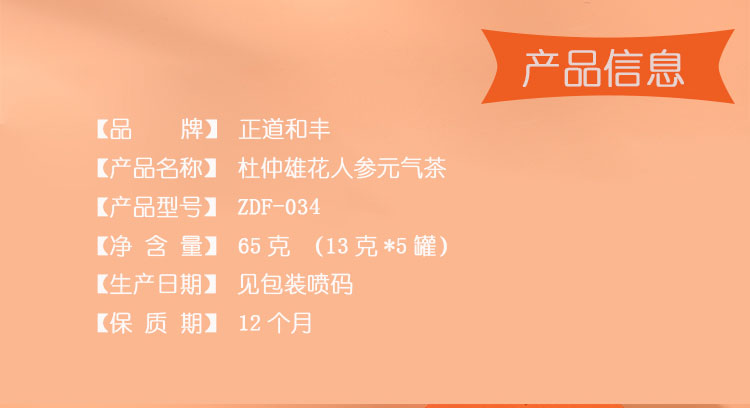 商品名称:正道和丰繁华盛景杜仲雄花人参元气小罐茶65g