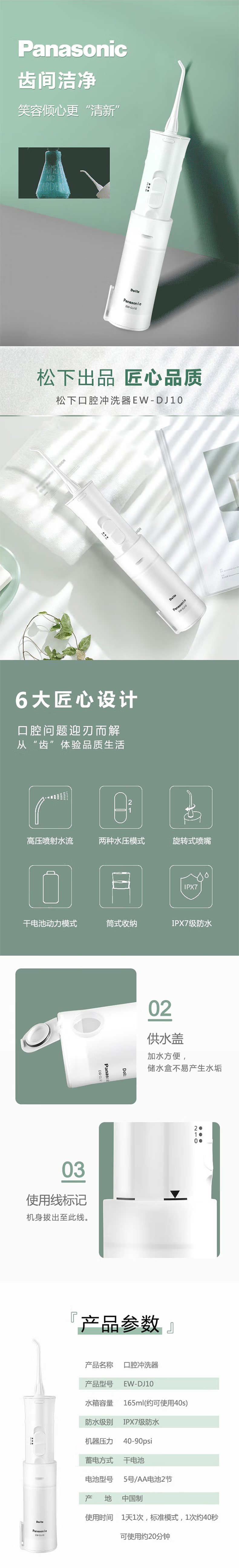 商品名称:Panasonic/松下冲牙器EW-DJ10-W405