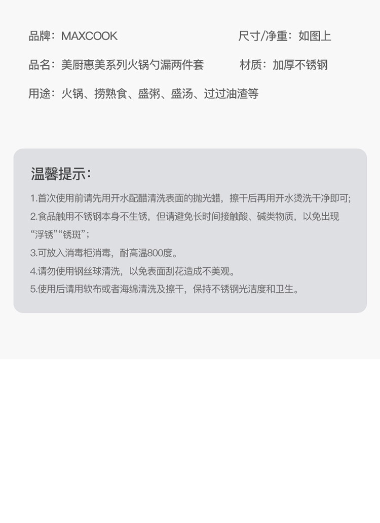 商品名称:MAXCOOK/美厨惠美系列火锅汤漏勺两件套MCLP-608