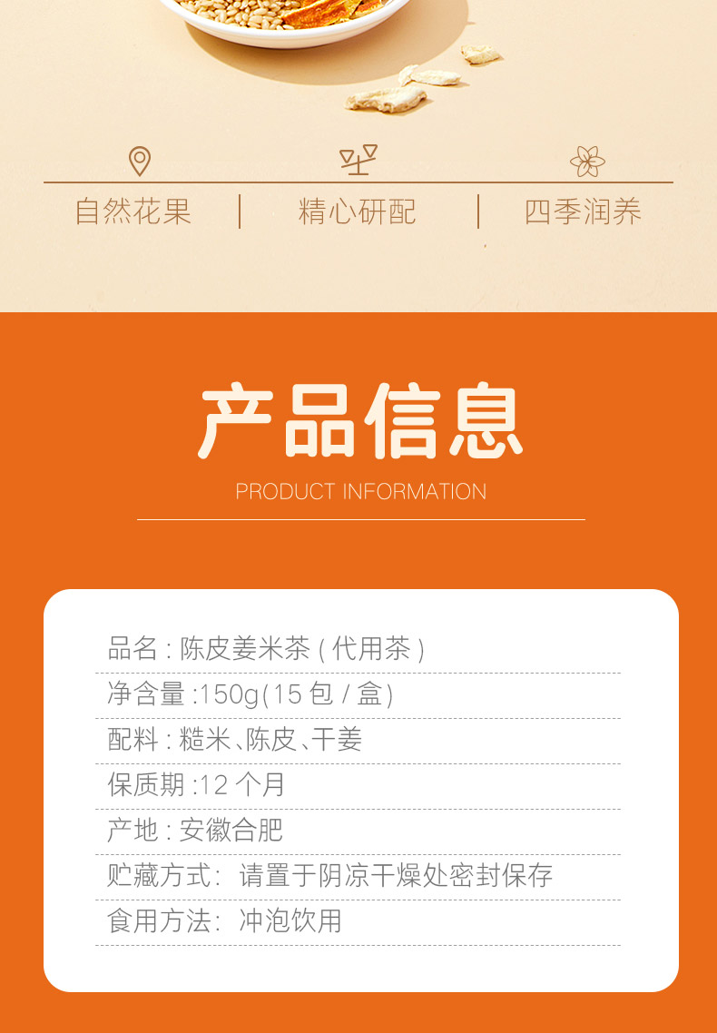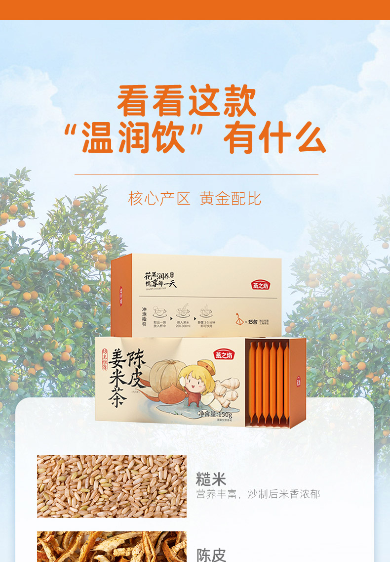 商品名称:燕之坊陈皮姜米茶150g*2盒