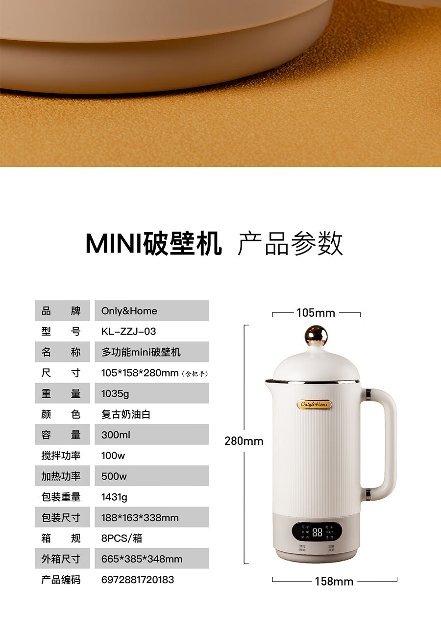 商品名称:Only&Home300毫升多功能mini破壁机