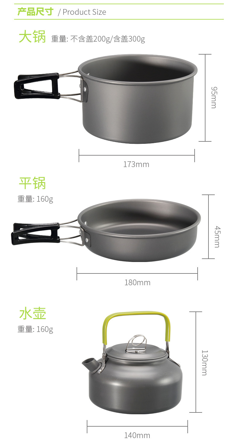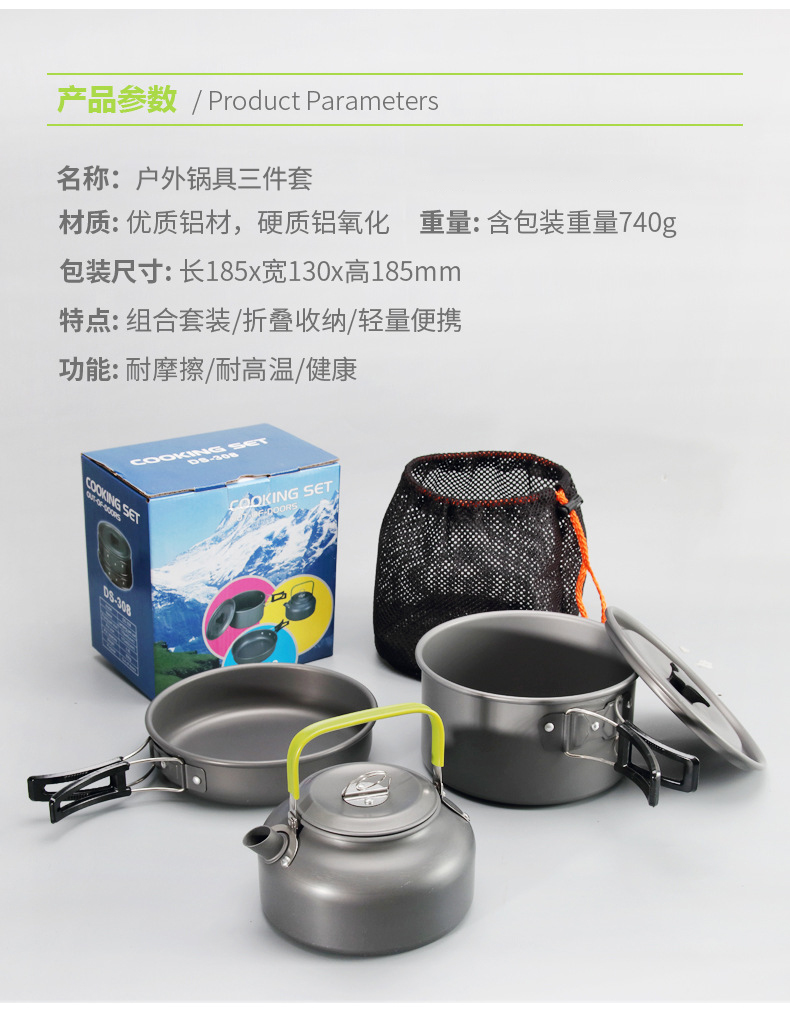 商品名称:FTLY/飞图乐户外野营茶壶锅具三件套组合GJSJT01