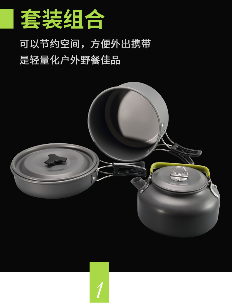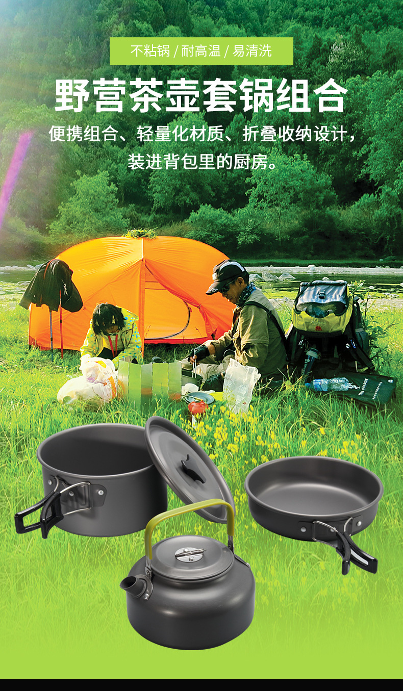 FTLY/飞图乐户外野营茶壶锅具三件套组合GJSJT01