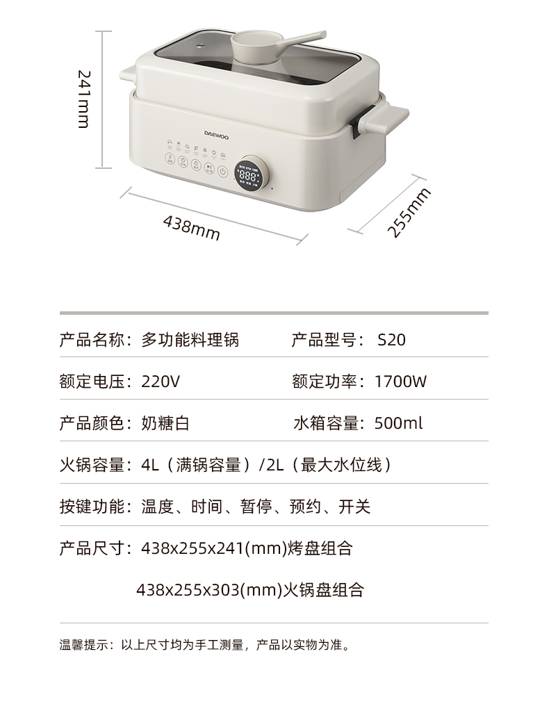 商品名称:DAEWOO/大宇4升多功能料理锅S20