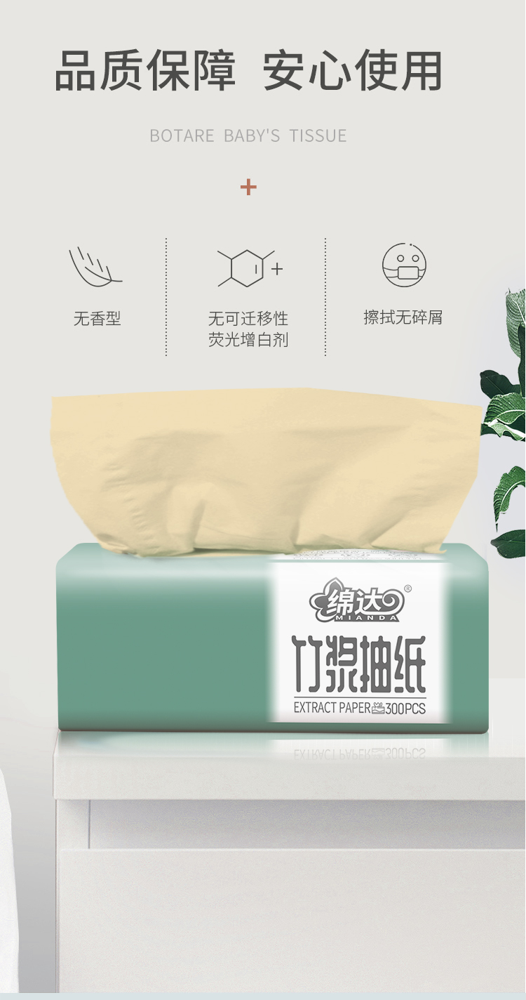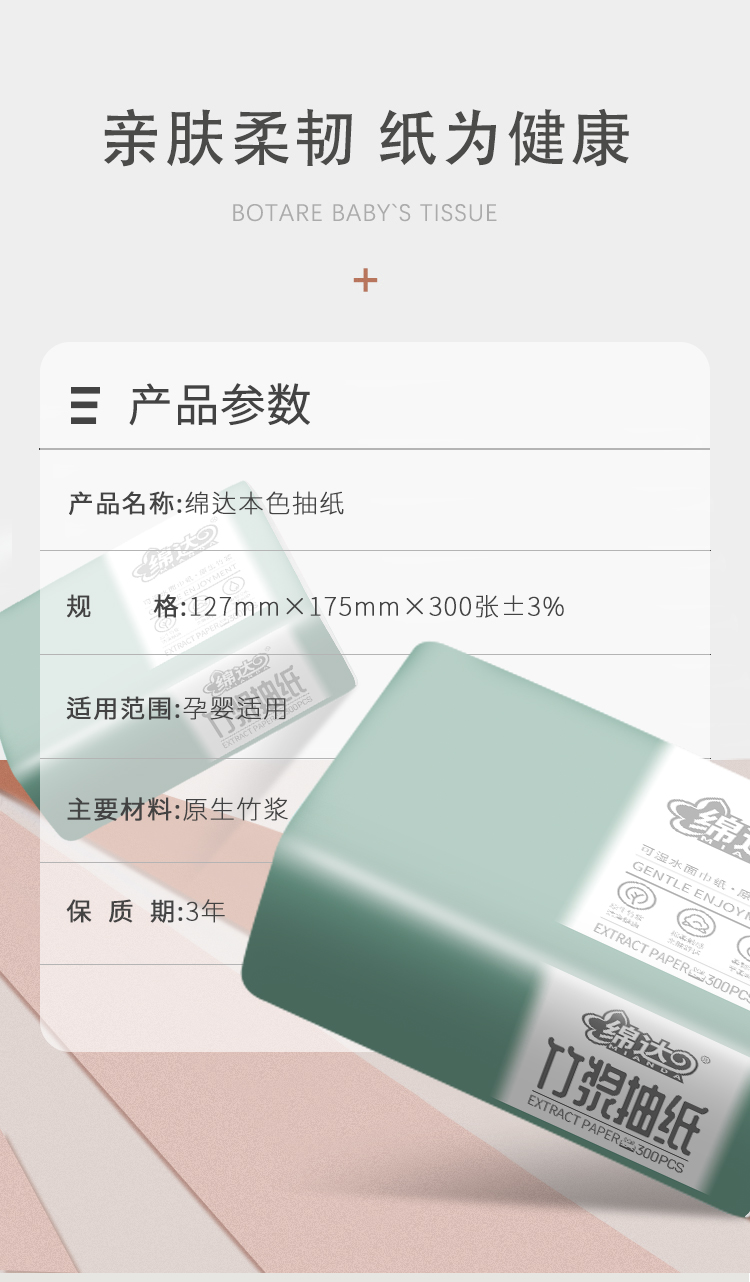 商品名称:绵达4层无香型竹浆本色抽纸约300张左右*30包