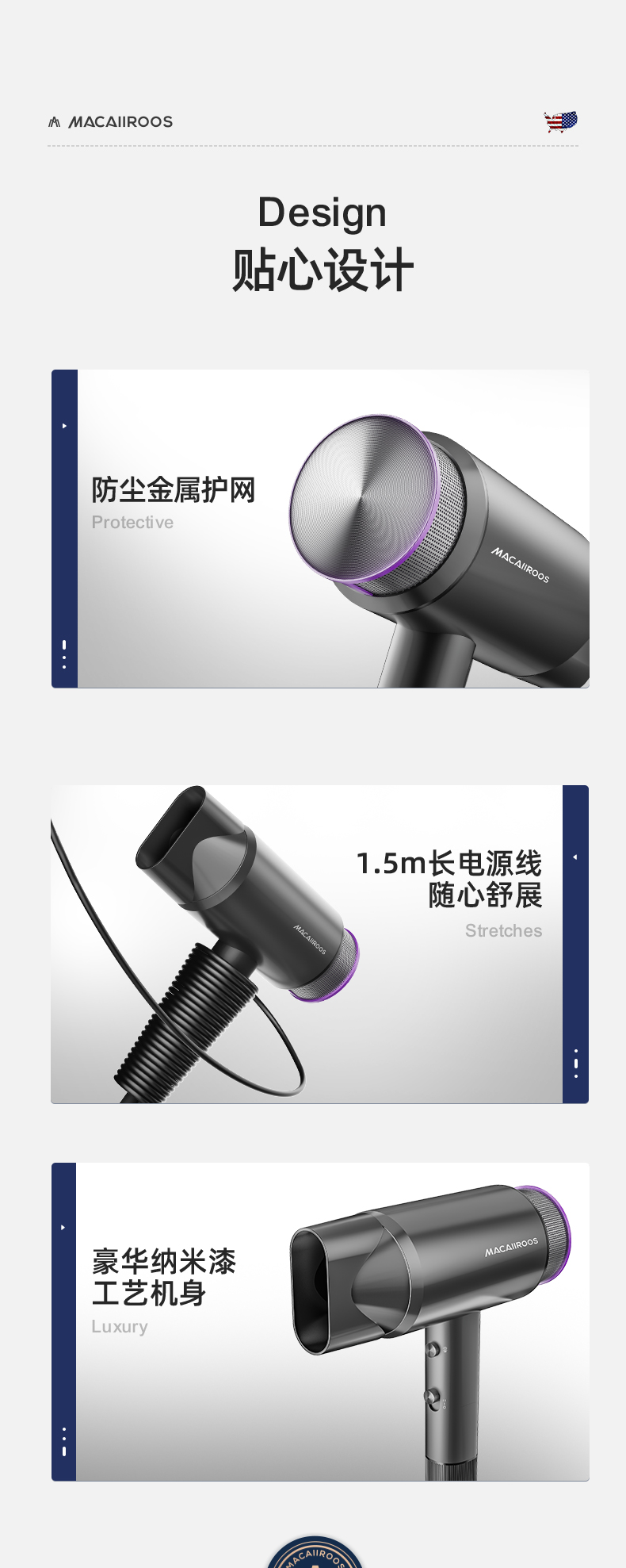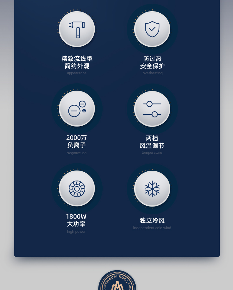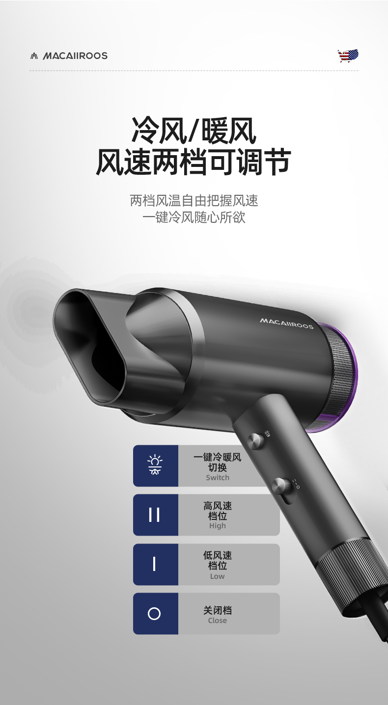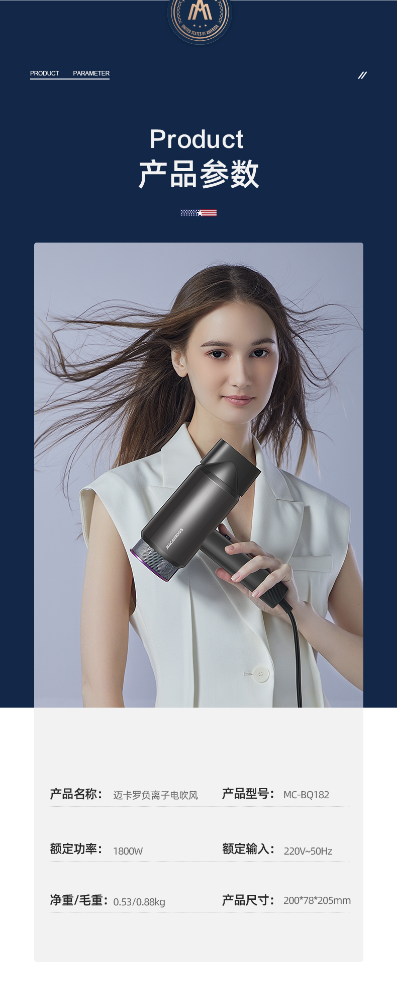 商品名称:【德邦配送】MACAIIROOS/迈卡罗负离子电吹风MC-BQ182