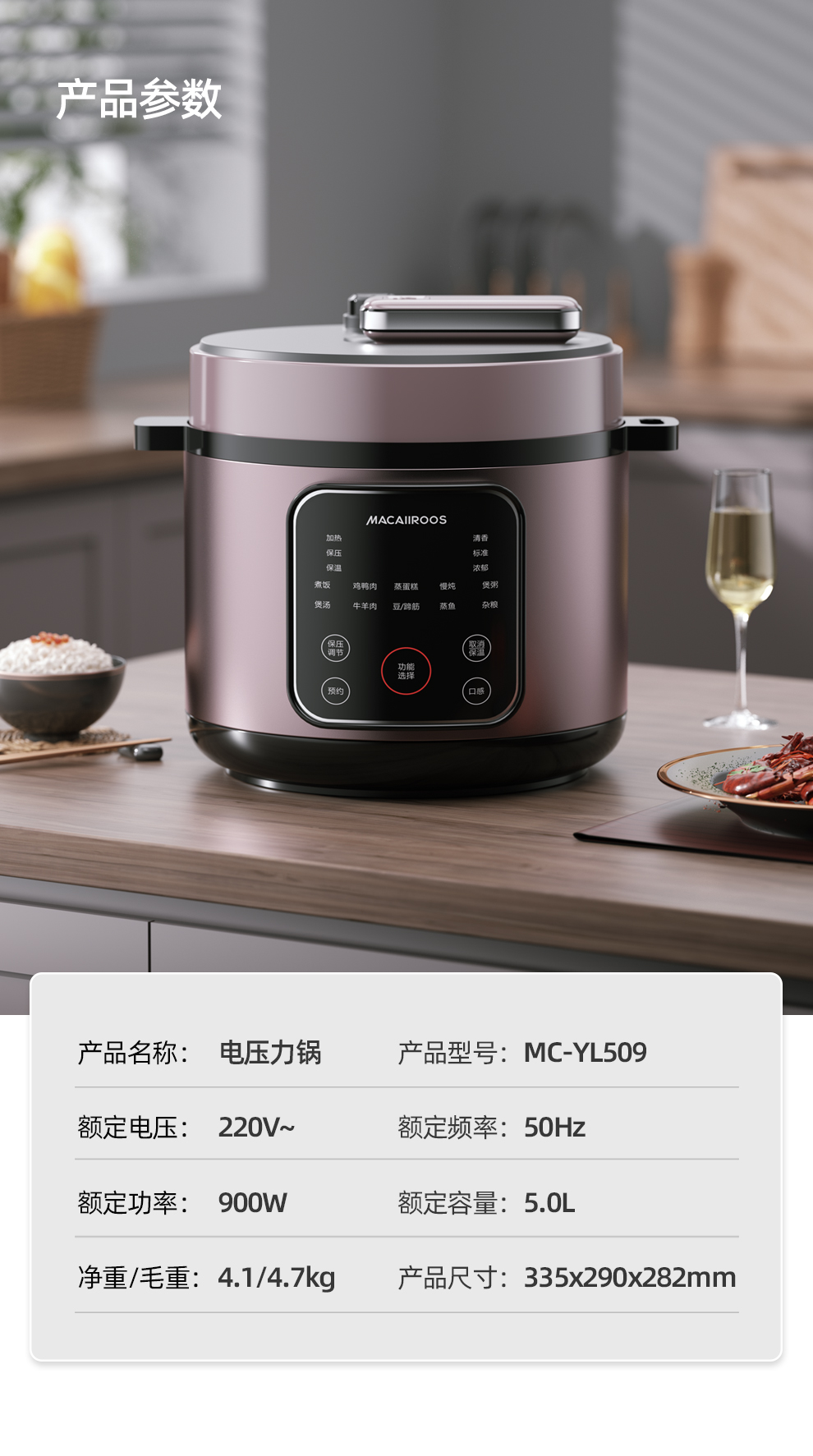 商品名称:MACAIIROOS/迈卡罗5升电压力锅MC-YL509