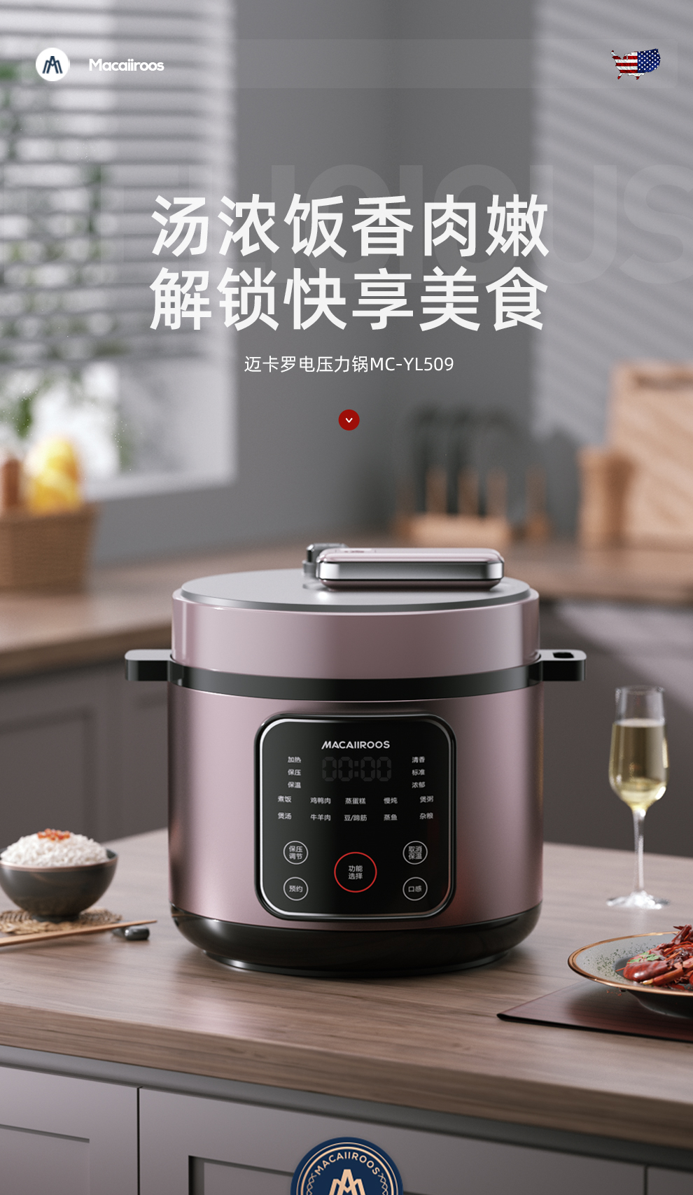 MACAIIROOS/迈卡罗5升电压力锅MC-YL509