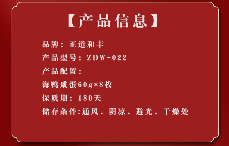 商品名称:正道和丰五谷丰登海鸭蛋8枚装约480g