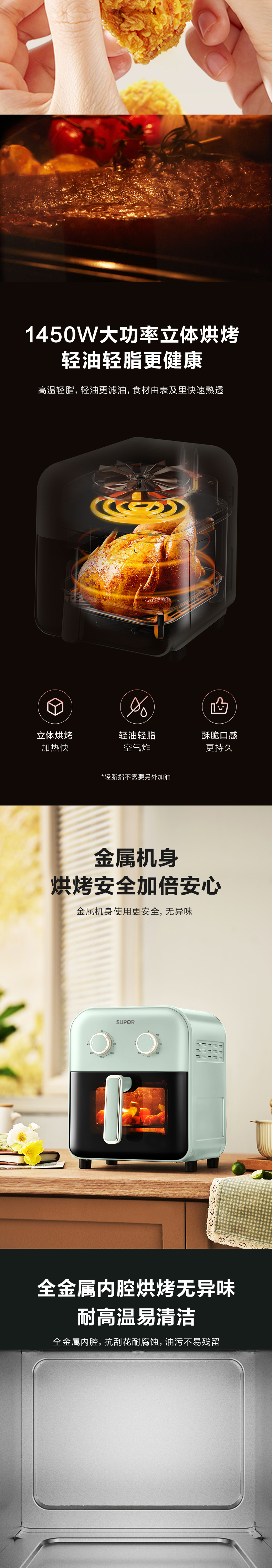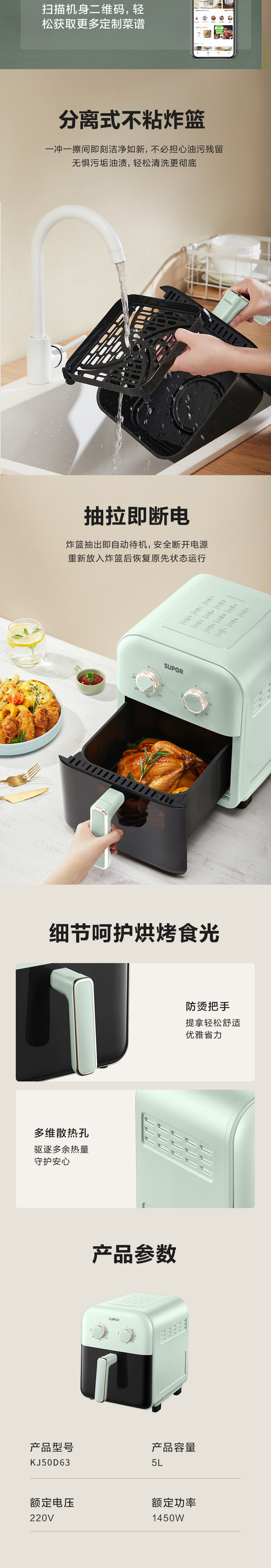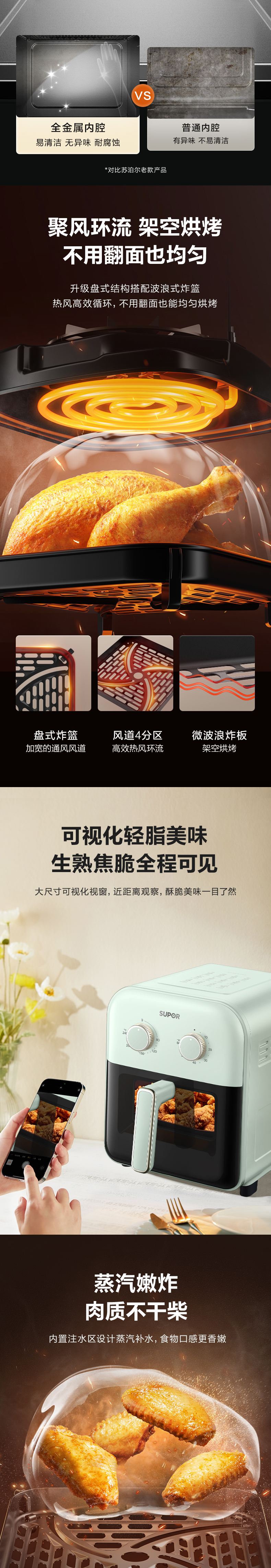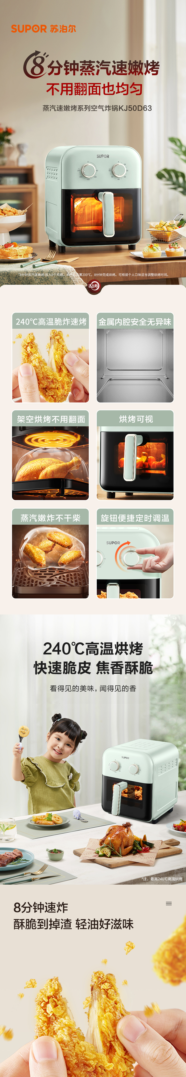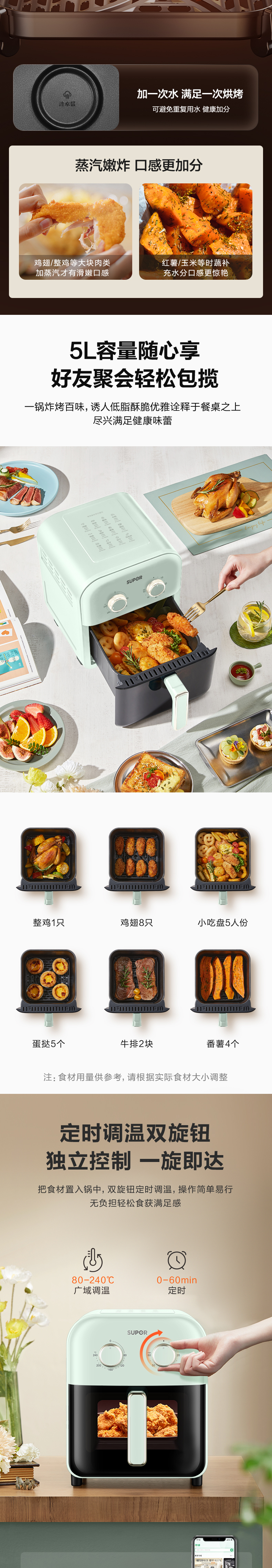 商品名称:SUPOR/苏泊尔5升蒸汽速嫩烤系列空气炸锅KJ50D63