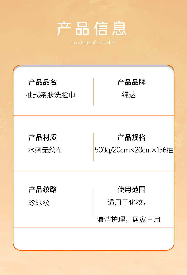 商品名称:绵达悬挂抽式亲肤洗脸巾156抽500g*2提