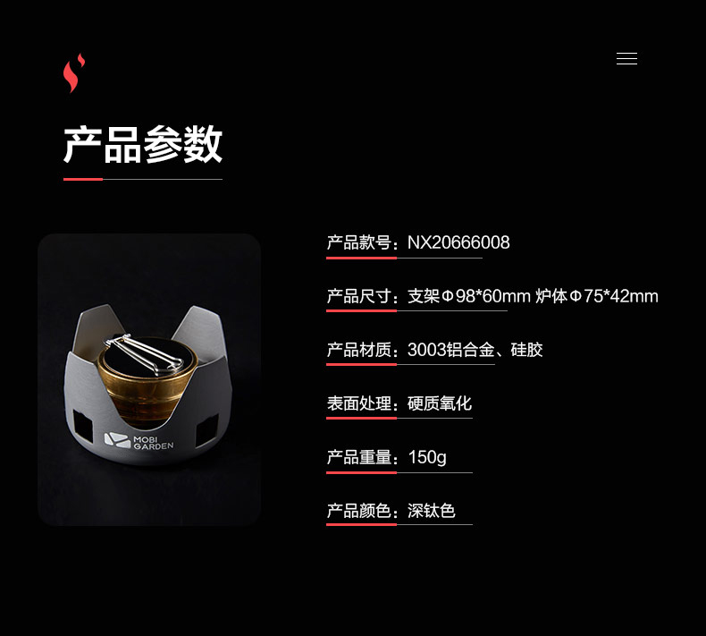 商品名称:MOBIGARDEN/牧高笛户外便携式酒精炉LNX20666008