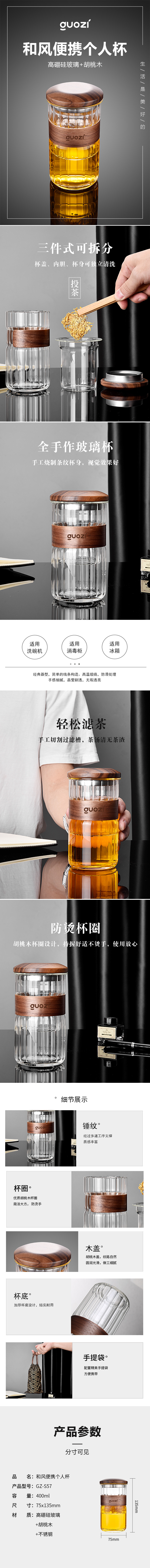 商品名称:GUOZI/果兹400毫升和风便携个人杯GZ-S57