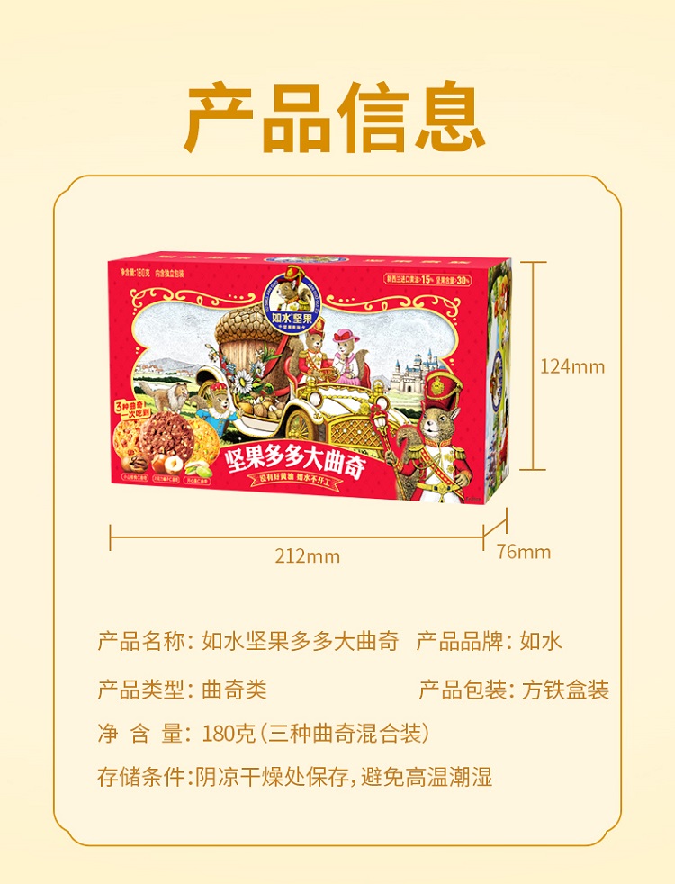 商品名称:【京东配送】如水坚果多多大曲奇方铁盒装180g*2盒