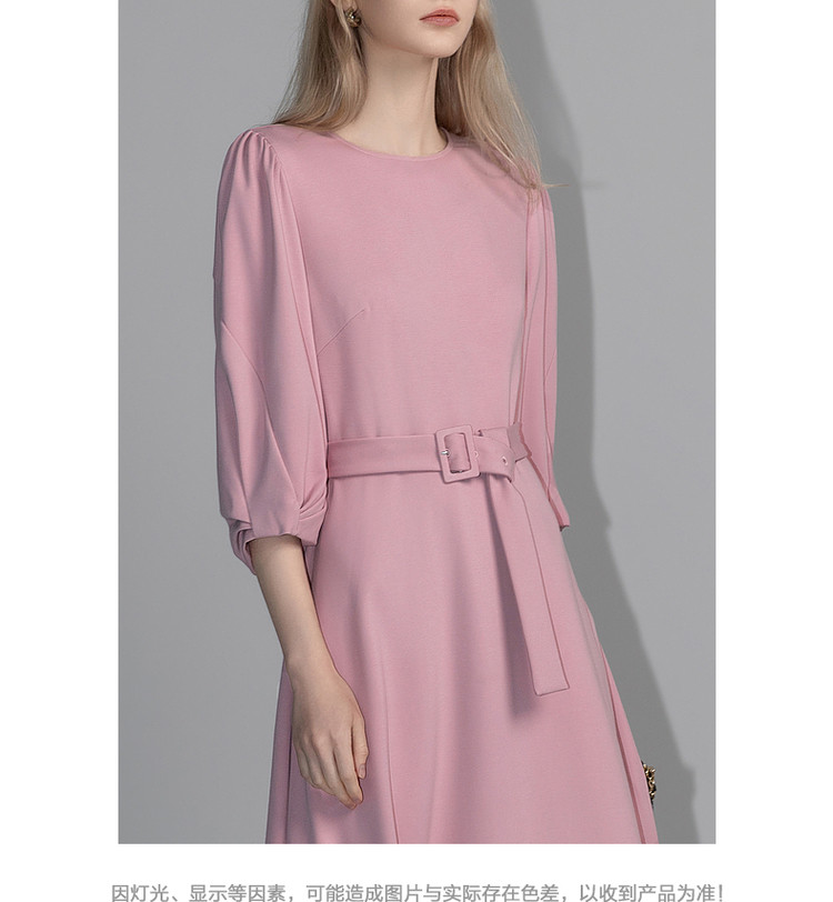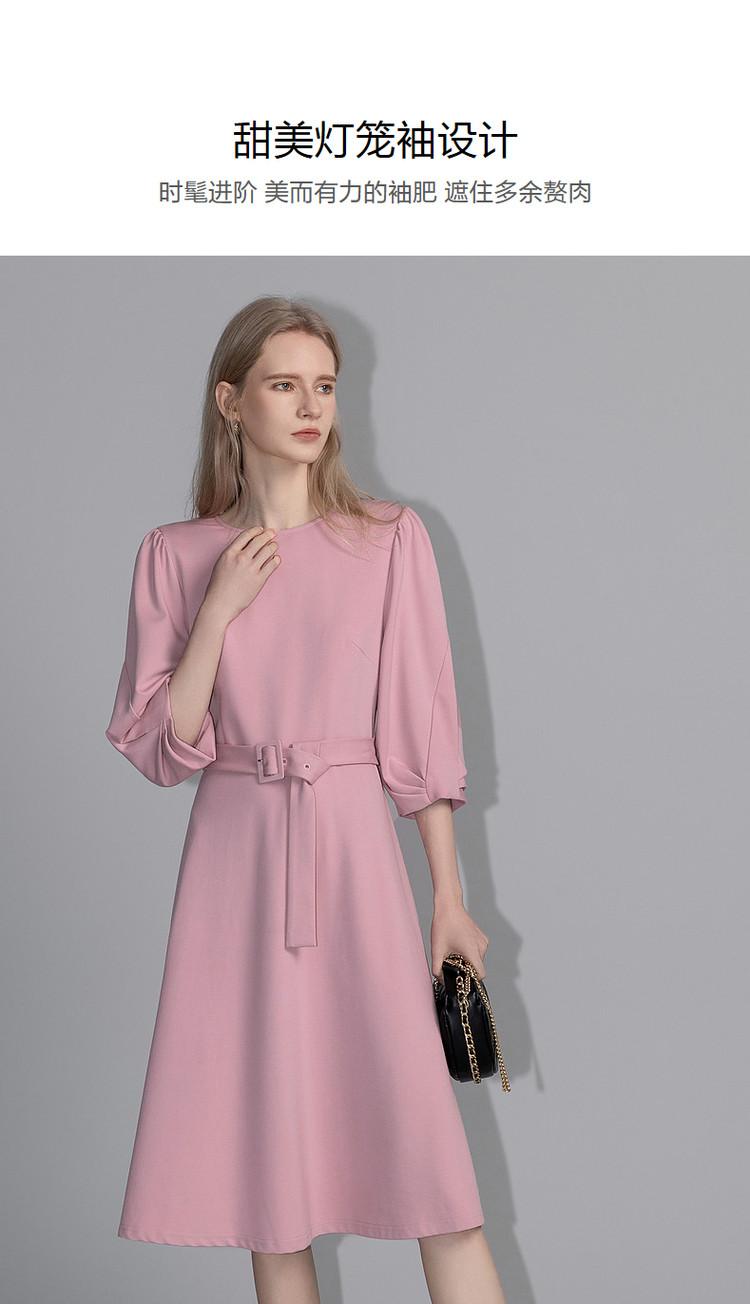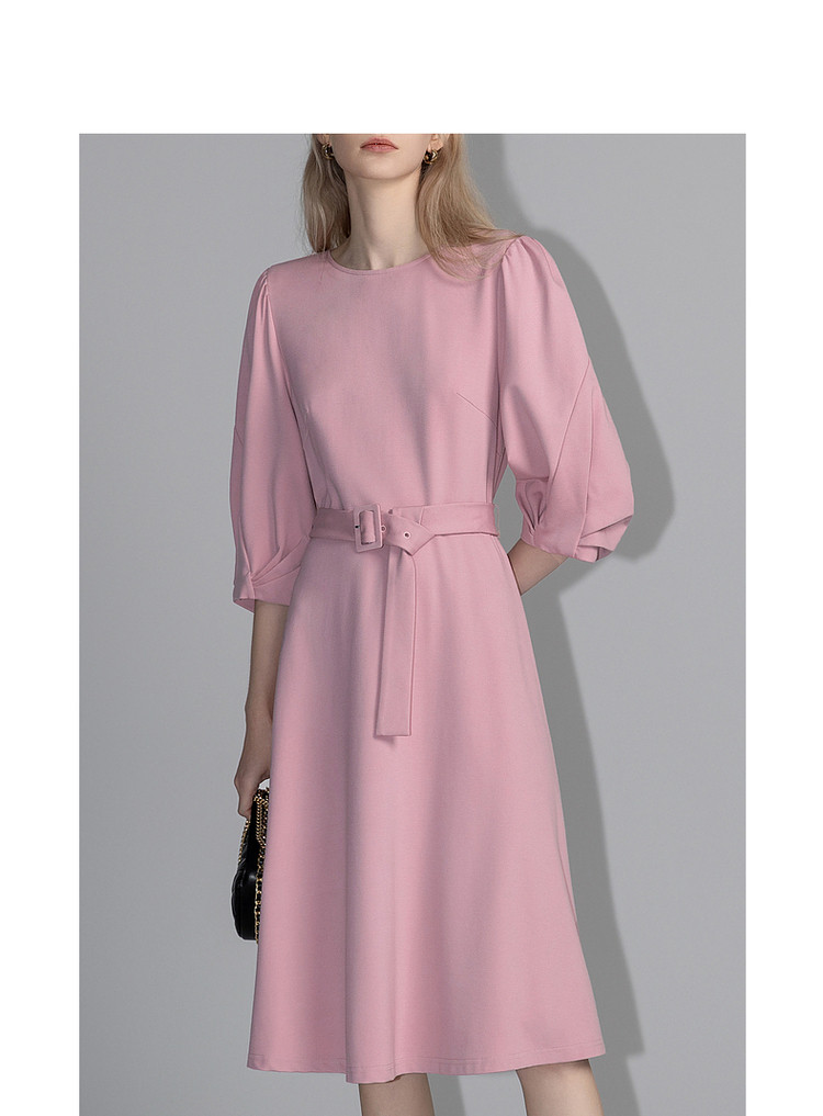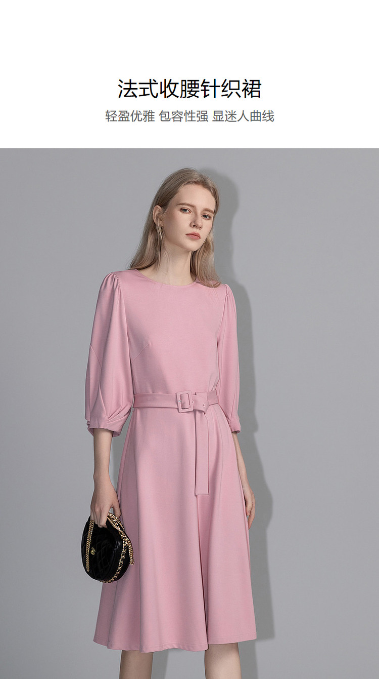 商品名称:【赫本风小黑裙】春秋圆领罗马棉收腰灯笼袖连衣裙女中长款 395585