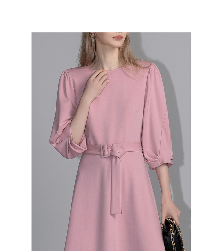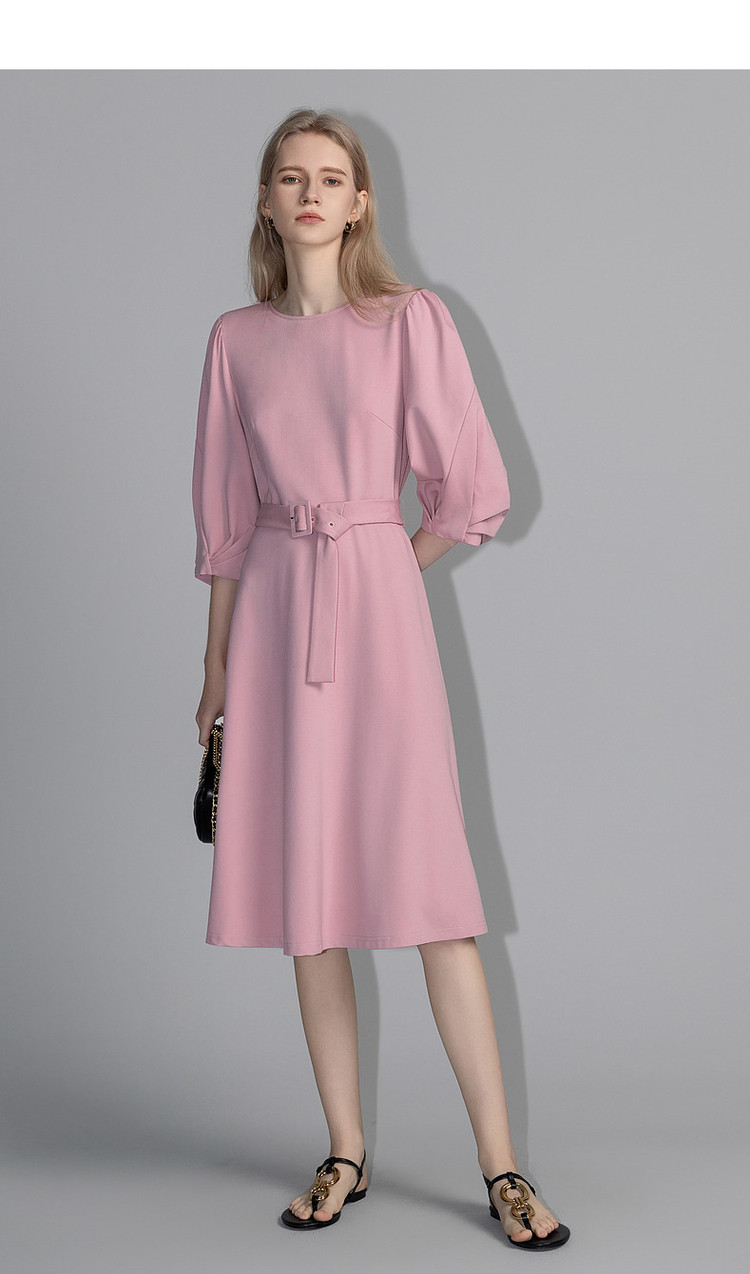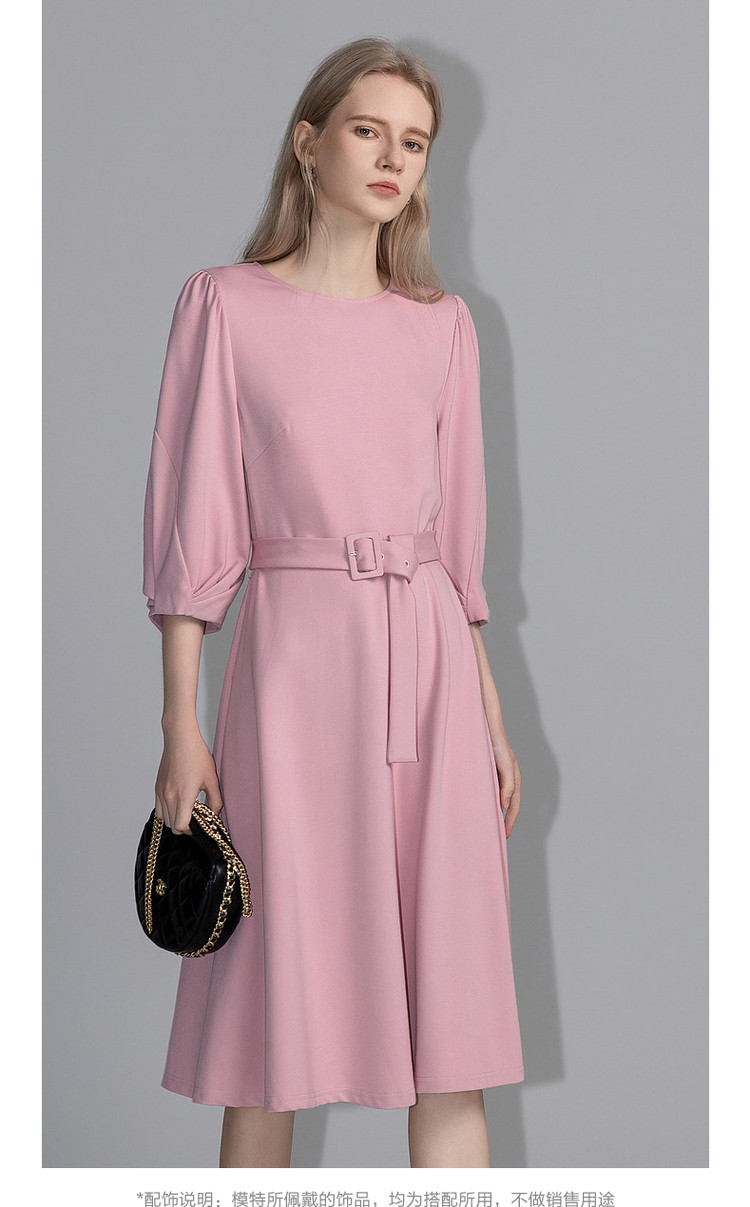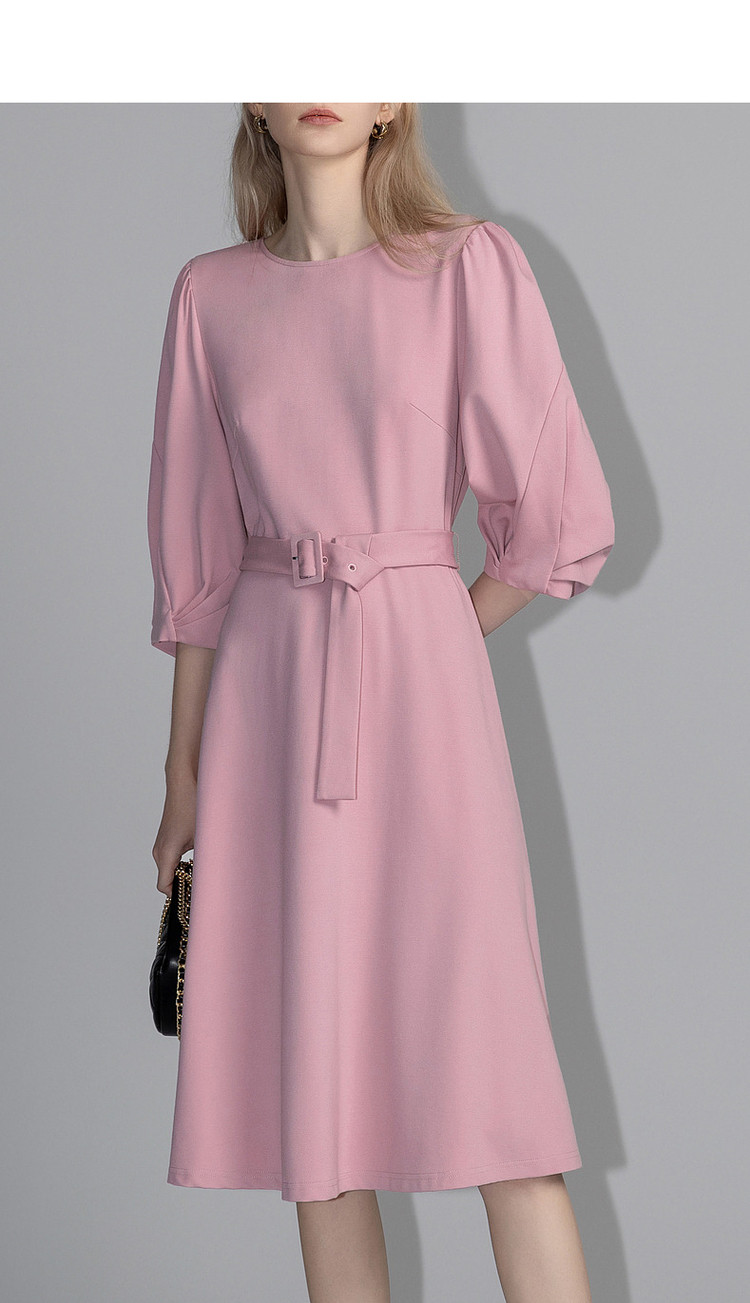 商品名称:【赫本风小黑裙】春秋圆领罗马棉收腰灯笼袖连衣裙女中长款 395585