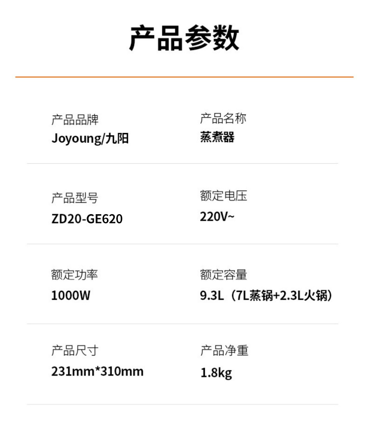 商品名称:【京东/德邦配送】Joyoung/九阳9.3升电蒸煮锅ZD20-GE620
